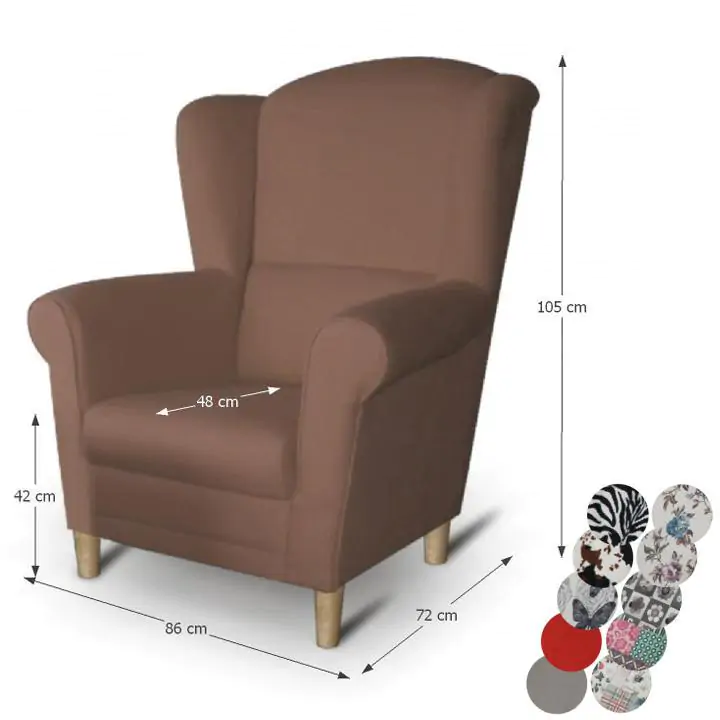 Provedení: Oblíbený typ křesla "ušák" zaručuje maximální pohodlí a relaxaci. Křeslo je vyrobeno v potahové látce Alova hnědá v kombinaci dřevěných nožiček v dekoru buk. V nabídce jsou i další barevná provedení nebo také varianta křesla včetně taburetu.