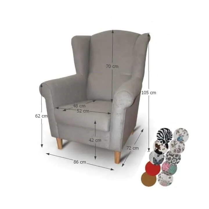 Provedení: Oblíbený typ křesla "ušák" zaručuje maximální pohodlí a relaxaci. Křeslo je vyrobeno v potahové látce Alova šedá v kombinaci dřevěných nožiček v dekoru buk. V nabídce jsou i další barevná provedení nebo také varianta křesla včetně taburetu.