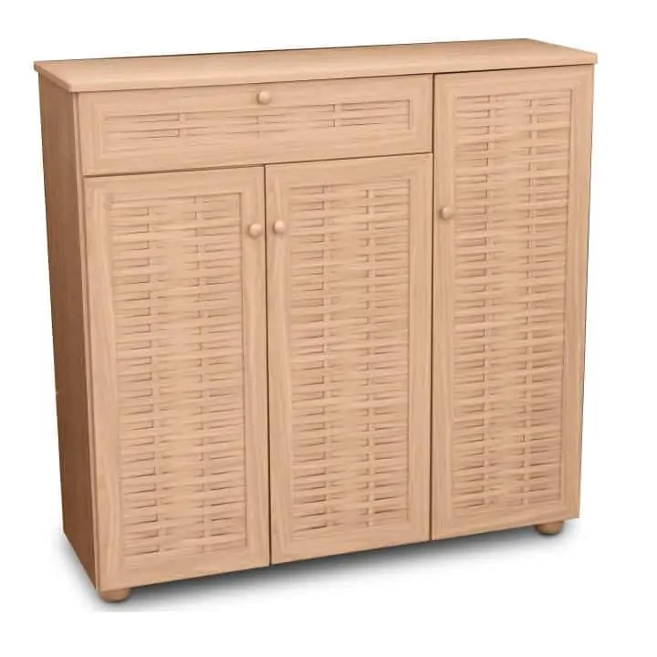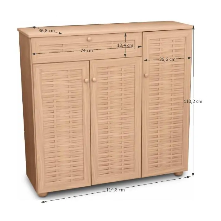 Provedení: Praktický třídveřový botník se zásuvkou je vyroben z laminované MDF v barevném provedení natural (přírodní). Dodáváno v demontu.