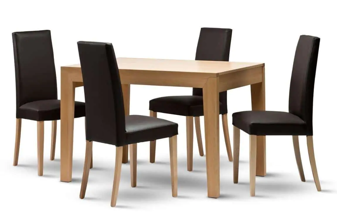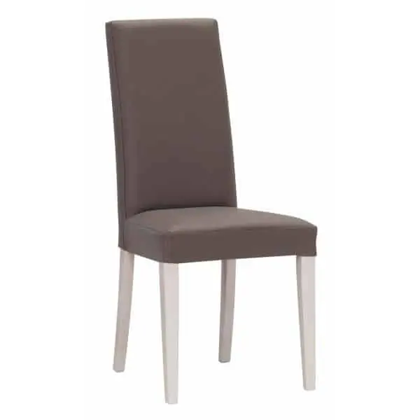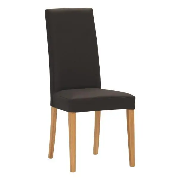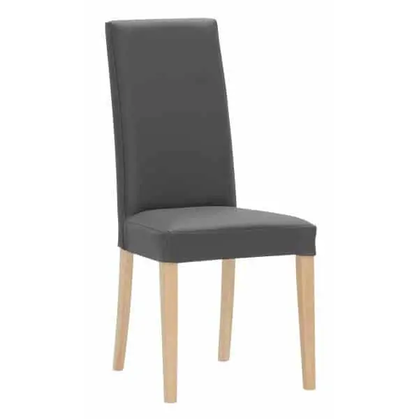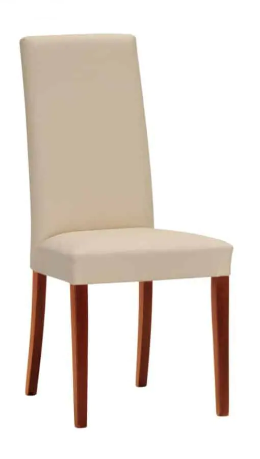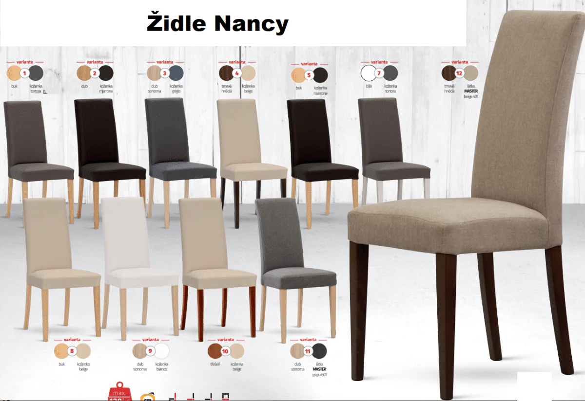Moderní jídelní židle Nancy je vyrobená z masivního buku s čalouněným sedákem a opěrákem koženkou v daných barevných provedeních. Lze zakoupit pouze nabízené kombinace. Povrchová úprava: Moření a lakování. K této židli doporučujeme zakoupit stůl od stejného dodavatele z naší nabídky.