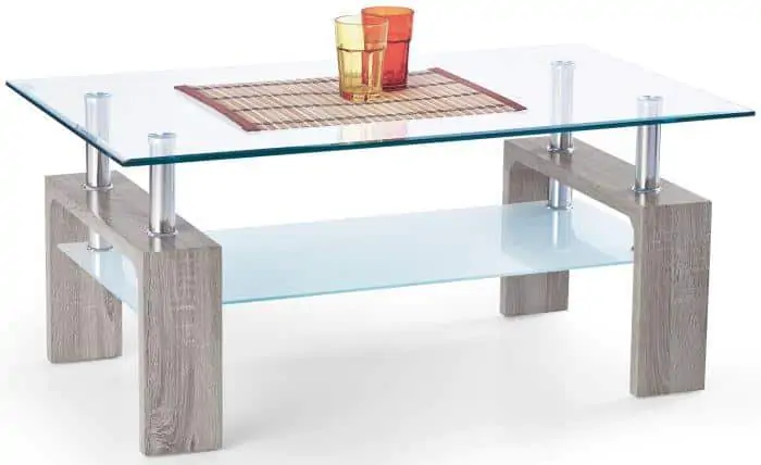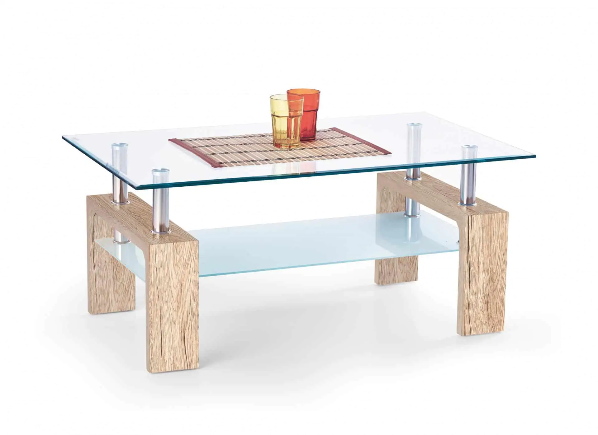 Provedení: Elegantní konferenční stolek Diana Intro s praktickou odkládací poličkou je vyroben v kombinaci skla, laminované nebo lakované MDF a chromovaných prvků. Stolek je na výběr v těchto barevných variantách: Dub sonoma Wenge Beton Bílá Zboží je dodáváno v demontu.