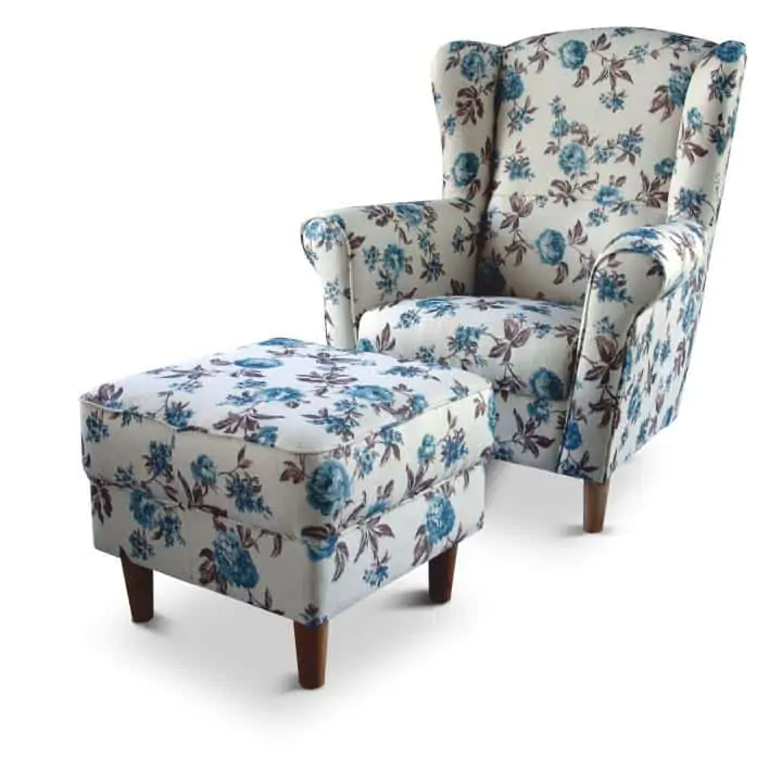 Provedení: Oblíbený typ křesla "ušák" je dodáván včetně taburetu pro maximální pohodlí a relaxaci. Křeslo s taburetem je vyrobeno v potahové látce Rose 14 v kombinaci dřevěných nožiček v barvě buk. Rozměry (ŠxVxH) křeslo - 86x105x72 cm, výška x hloubka sezení 42x48 cm taburet - 53x42x53 cm .