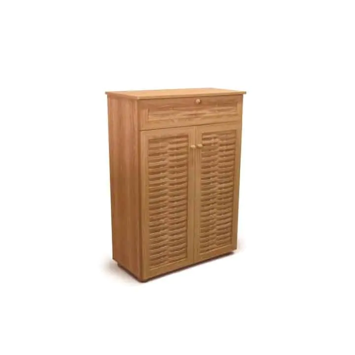 Provedení: Jednoduchý botník s dvířky. Materiál: MDF laminovaná. Barevné provedení: americká třešeň. Dodáváno v demontu.