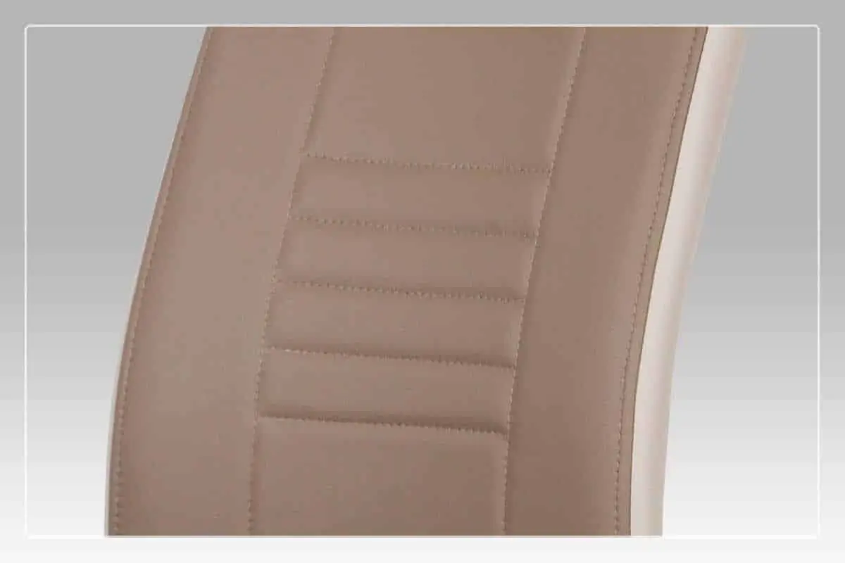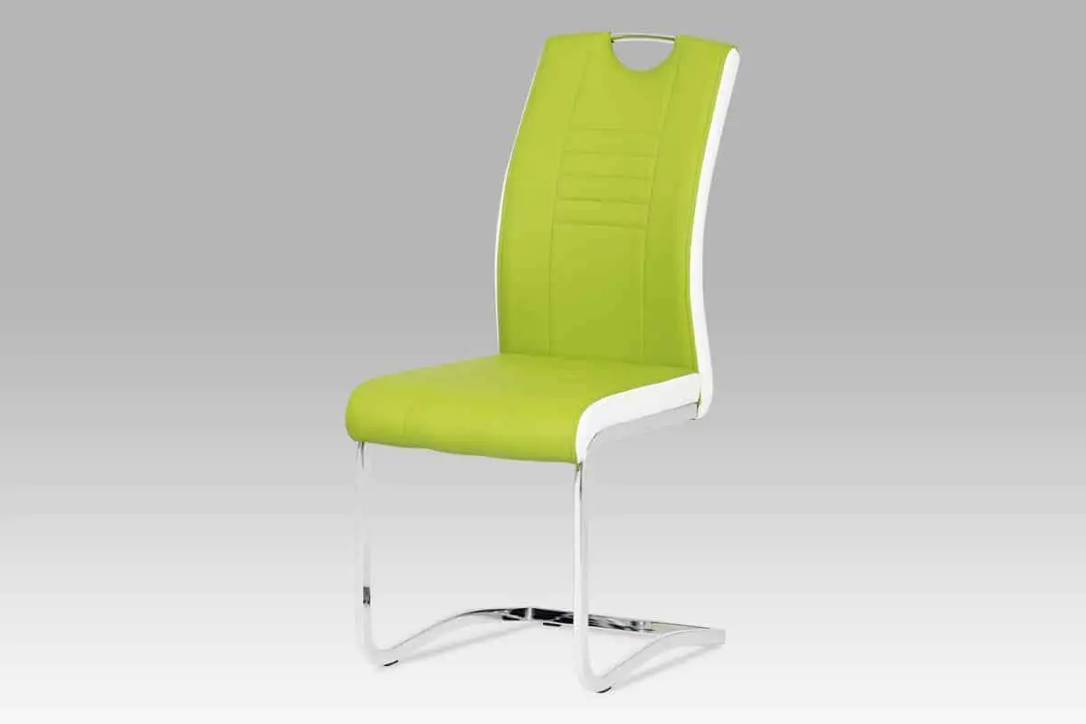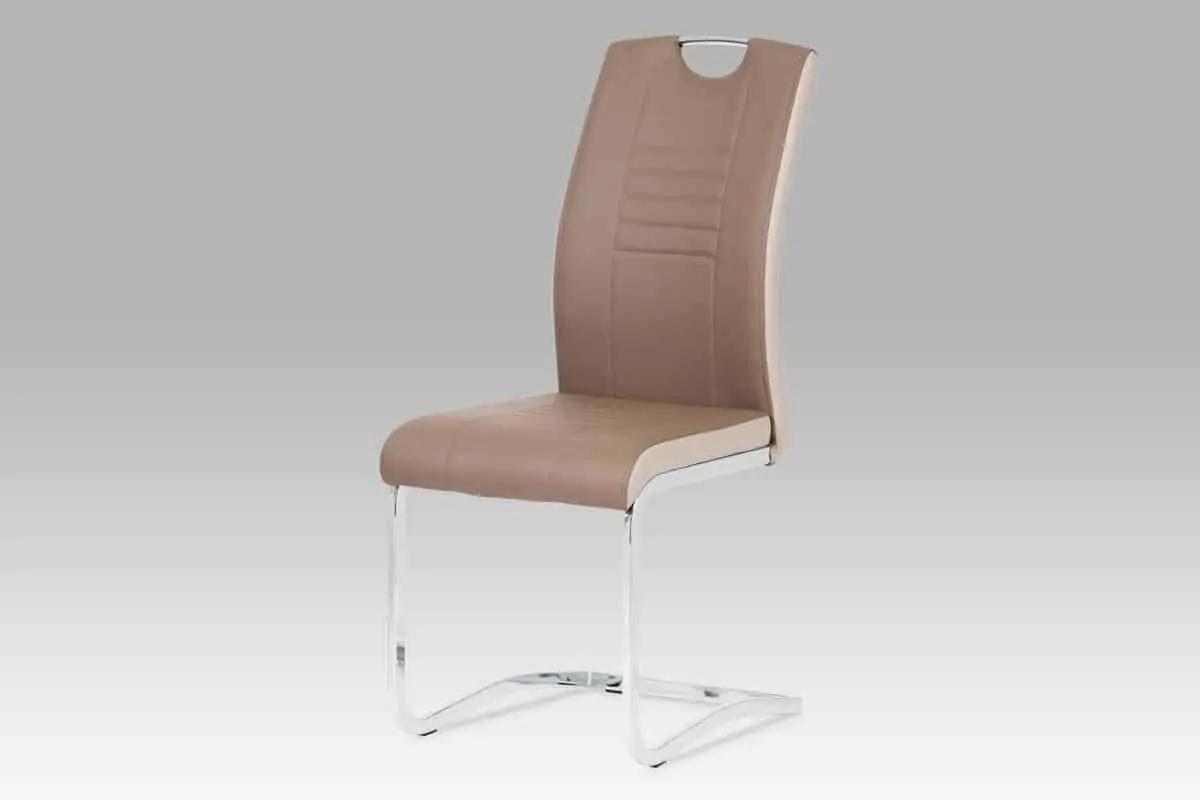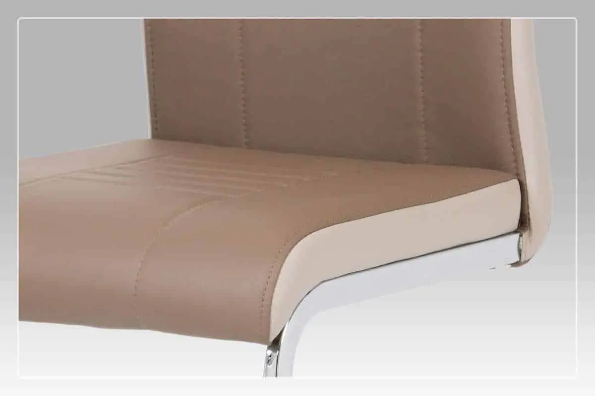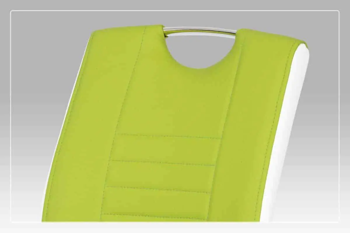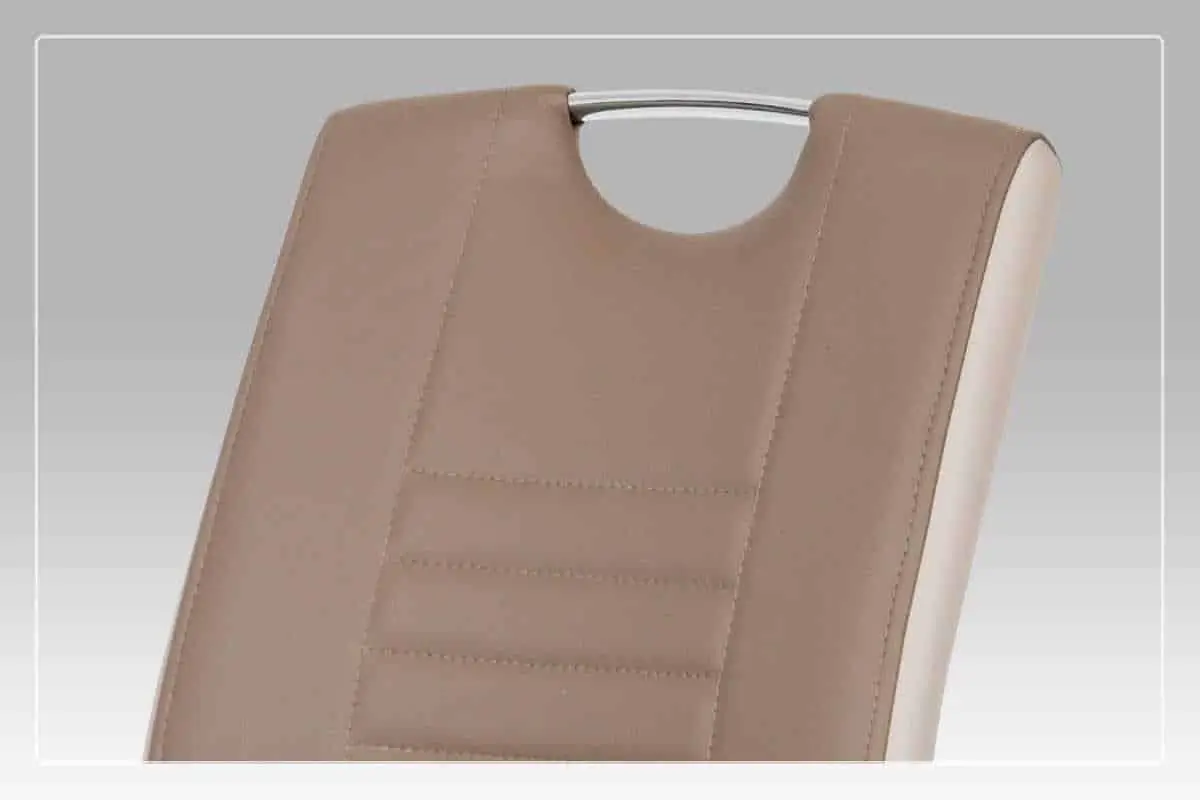 Provedení: Moderní jídelní židle na kovové chromové podnoži s čalouněným sedákem a opěrákem je opatřena kovovým madlem, který usnadňuje manipulaci se židlí. Židle je čalouněna koženkou, na výběr jsou 4 barevná provedení: koženka černá s bílými boky koženka šedá s bílými boky Jelikož židle jsou montované z několika komponentů, jejich určení je výhradně pro domácí interiéry a nejsou tudíž vhodné do společenských prostor.