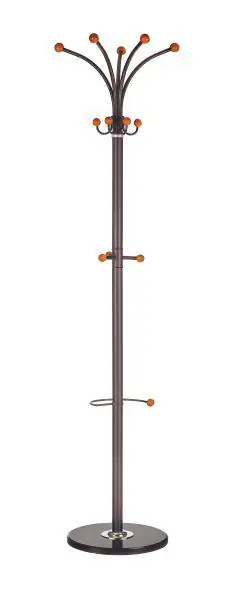 Provedení: Moderní stojací věšák W46 je vyroben v kombinaci oceli, kamenné základny a dřevěných prvků. Tento designový věšák je praktickým a zajímavým doplňkem interiéru. Je vhodný do vstupních hal, předsíní, kanceláří, čekáren apod. Zboží je dodáváno v demontu.