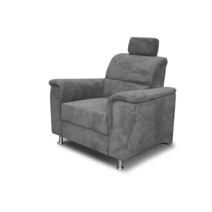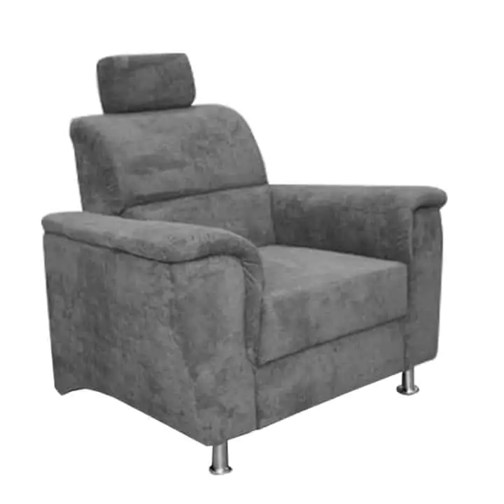 Provedení: Moderní křeslo k sedací soupravě Santiago je vyrobeno v potahové látce Matrix 17 šedá. Pohodlné křeslo se středně tvrdým sezením má polohovatelnou opěrku hlavy, kterou si můžete nastavit podle toho, jak je Vám to příjemné. Nožičky jsou kovové s povrchovou úpravou chrom.