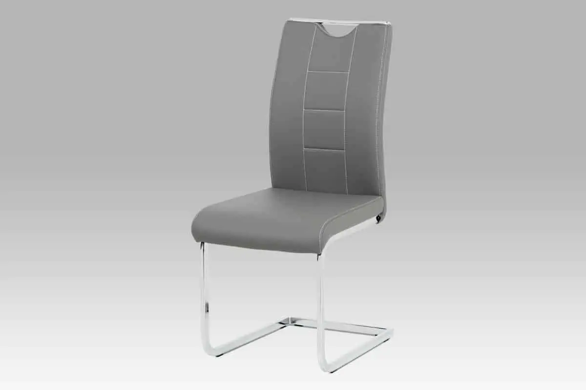 Atraktivní židle v moderním designu bude ozdobou každé jídelny či kuchyně. Provedení koženka v šedé, bílé, černé nebo latté barvě s dekorativním prošitím v kombinaci s pochromovaným madlem a podnoží. Praktické madlo zajistí snadnou manipulaci. Nosnost židle je do 110 kg. Dodáváno v demontu. Jelikož židle jsou montované z několika komponentů, jejich určení je výhradně pro domácí interiéry a nejsou tudíž vhodné do zátěžových prostor.