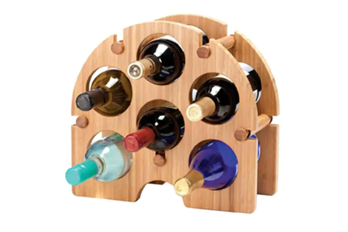 Stojan na víno je vyroben z bambusu. Je to praktický a vkusný doplněk v interiéru. Rozměry: 30x15x30 cm