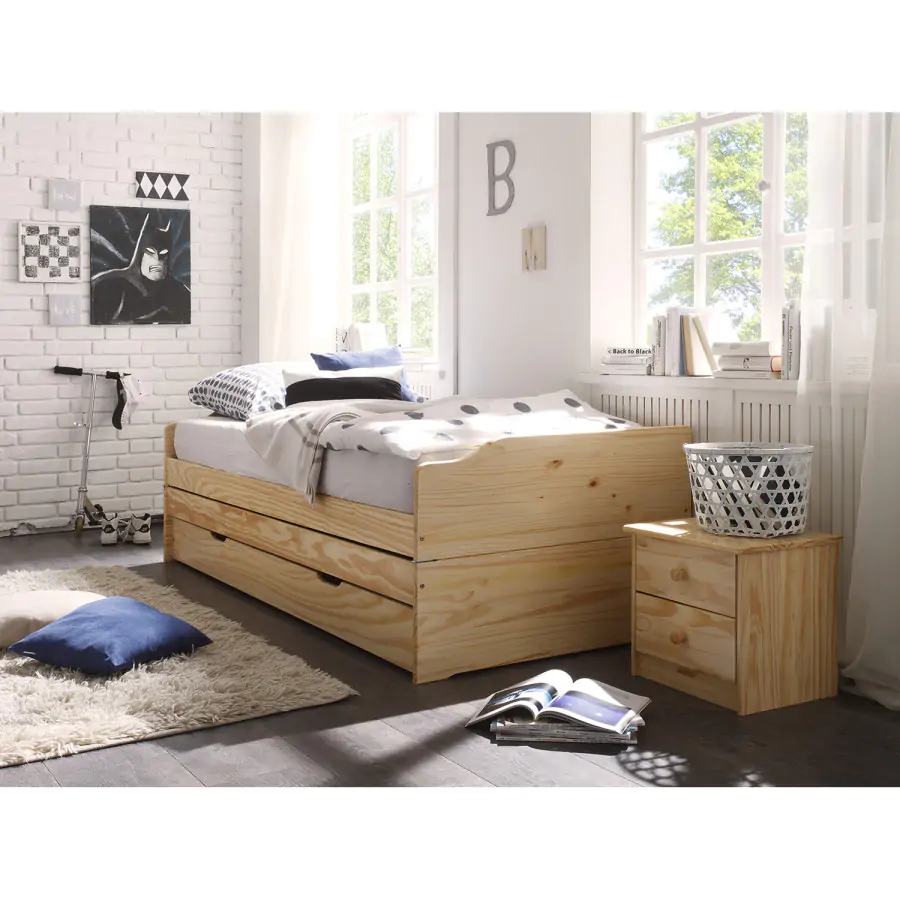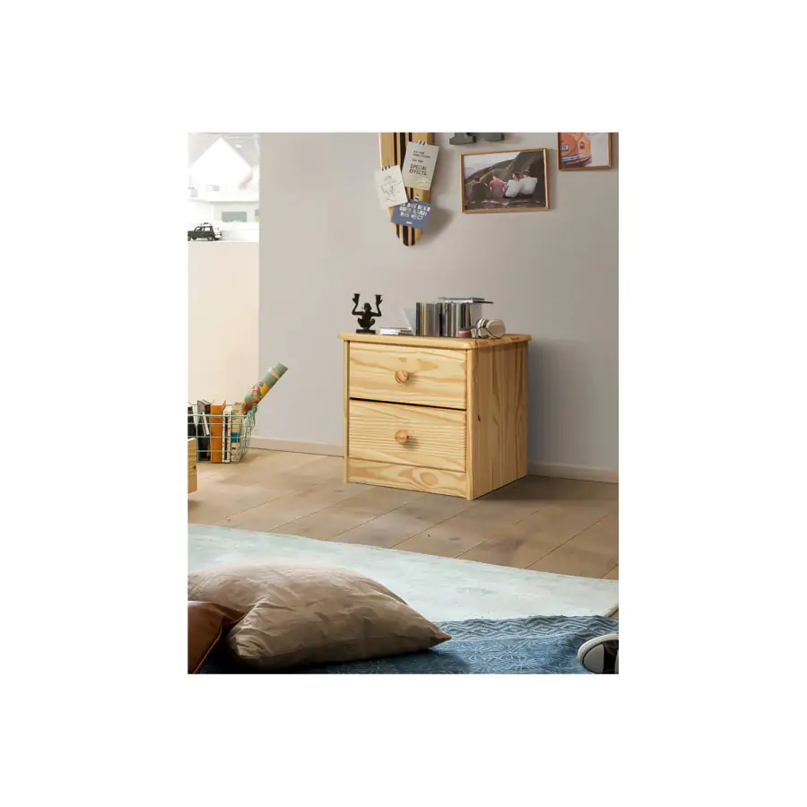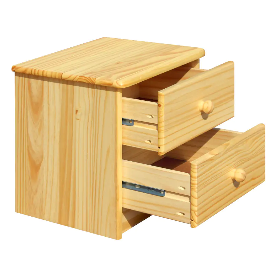 Noční stolek z masivní borovice, lakované provedení 2 zásuvky s kovovými pojezdy, hloubka zásuvky 27,5 cm