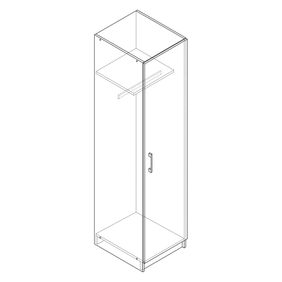 Jednodveřová šatní tyč vyrobená z laminované dřevotřísky v barevném provedení buk. Šatní skříň je vybavená šatní tyčí a policí. Nástavec není součástí skříně. Nástavec 11515 lze dokoupit zvlášť. KARTON: 1 ks (rozměry, š/v/d: 52 x 8 x 195 cm) Dodáváno v demontu.