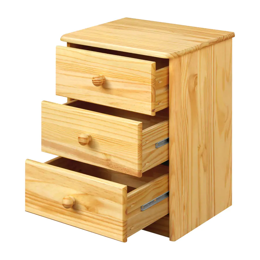 Provedení:Dřevěná komoda je vyrobena z borovicového masivu. Komoda patří mezi velmi praktické úložné prostory v domácnosti. Tato komoda sestává ze třech zásuvek s kovovými pojezdy. Povrchová úprava:Komoda je povrchově zakončena dekoračním voskem, který nechá vyniknout přirozenou kresbu dřeva. Dekorační vosky odpuzují vodu a nečistoty. Zboží je dodáno v demontu.