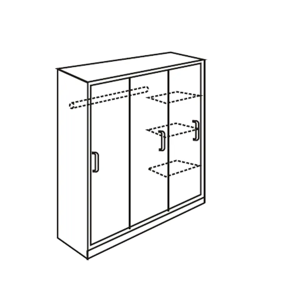 Šatní skříň s posuvnými dveřmi je zhotovena z laminované dřevotřísky v barevném provedení bílá. Prostor je dělený v poměru 2:1, posuvné dveře širší část šatní tyč, užší část 3 variabilní police. Doporučujeme dokoupit nástavec 3223B. Tloušťka lamina 1,5 cm. Dodáváno v demontu.