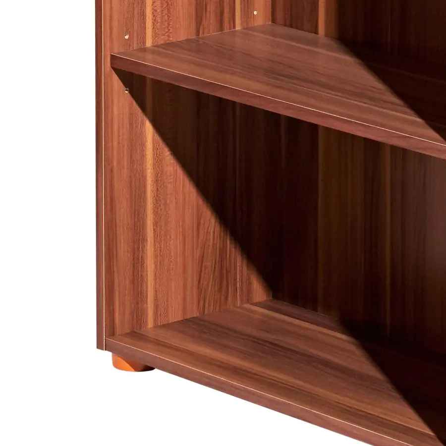 Provedení: Knihovna je vyrobená z laminované dřevotřísky v barevném provedení ořech. Otevřená police disponuje čtyřmi variabilně nastavitelnými policemi. Tato moderní knihovna je díky svému provedení vhodná k využití do všech moderních interiérů. Zboží je dodáváno v demontu.