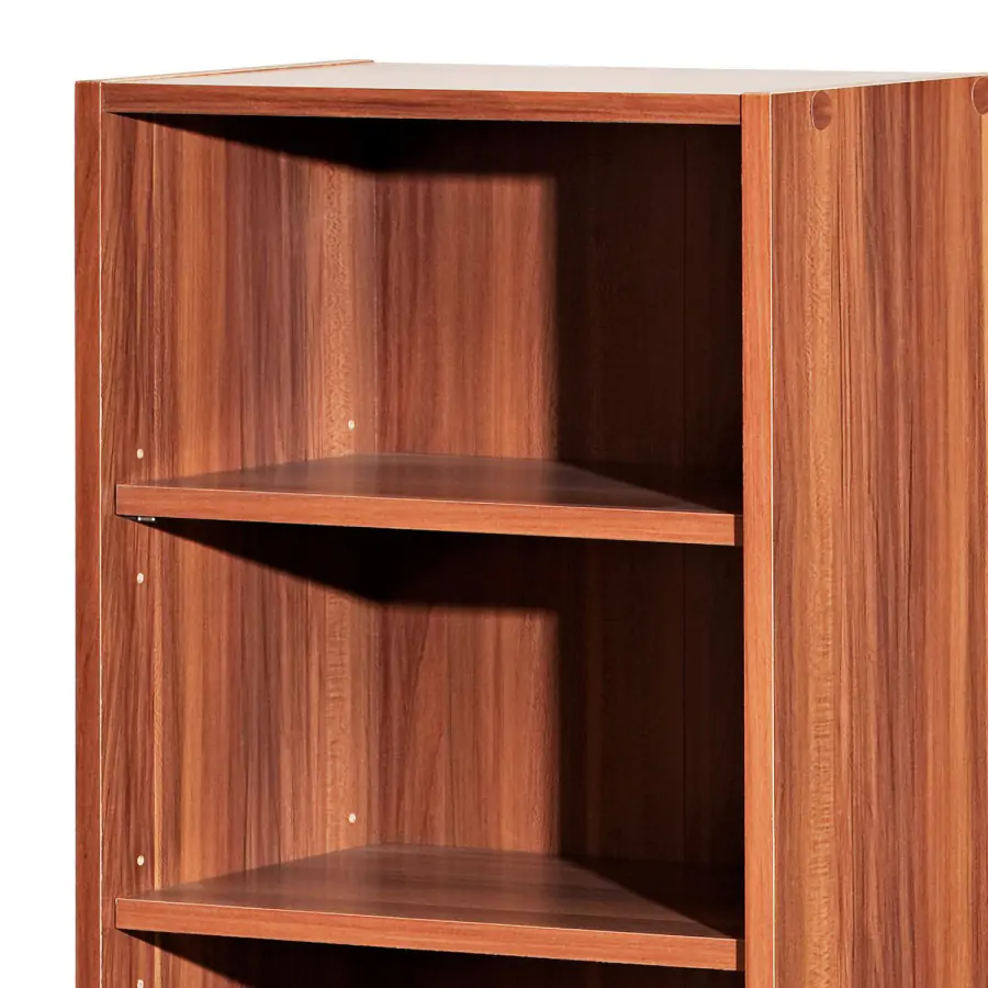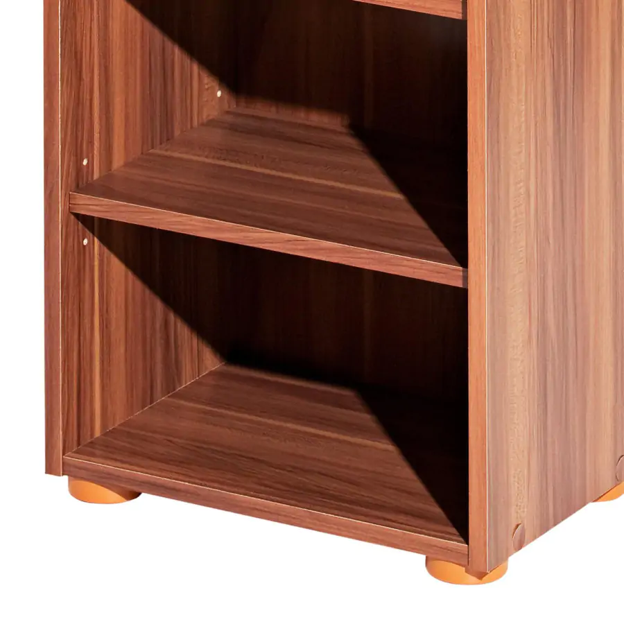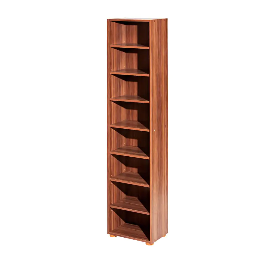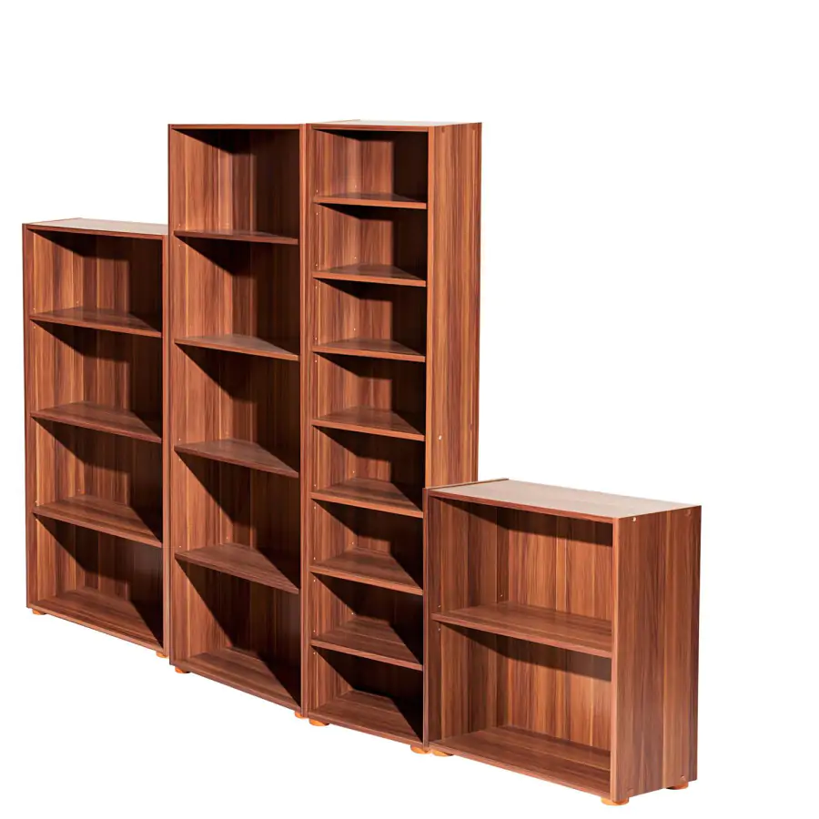 Provedení: Knihovna je vyrobená z laminované dřevotřísky v barevném provedení ořech. Otevřená police disponuje sedmi variabilně nastavitelnými policemi. Tato moderní knihovna je díky svému provedení vhodná k využití do všech moderních interiérů. Zboží je dodáváno v demontu.