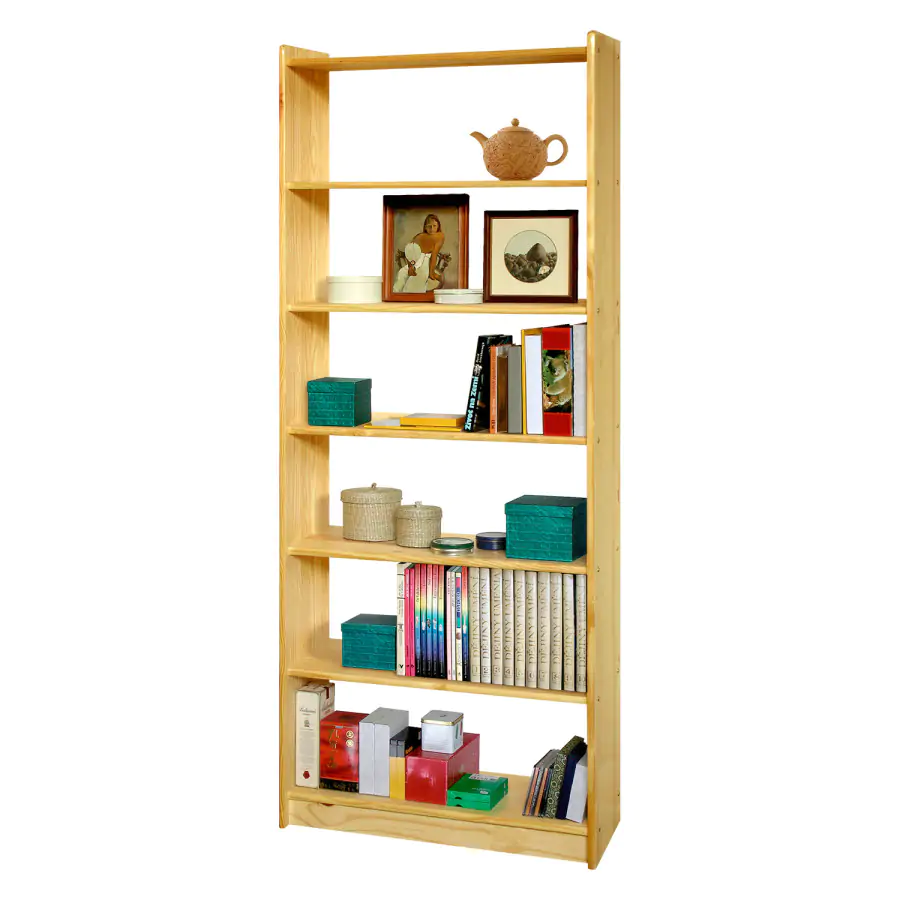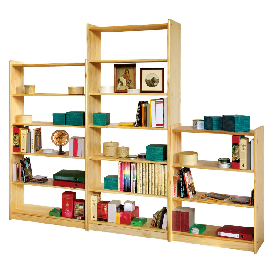 Provedení: Knihovna je vyrobená z masivního borovicového dřeva lakovaného v přírodní barvě. Otevřená police disponuje pěti policemi. Tato moderní knihovna je díky svému provedení vhodná k využití do všech moderních interiérů. Zboží je dodáváno v demontu.