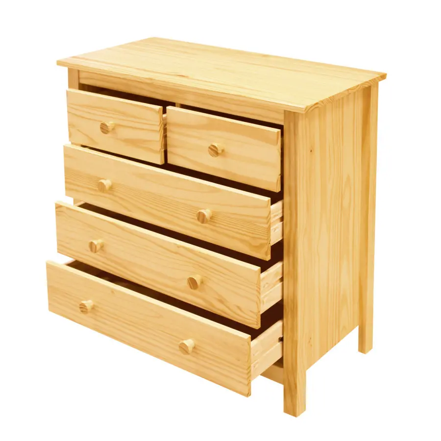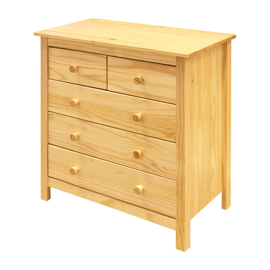 Provedení:Dřevěný prádelník je vyrobený z borovicového masivu. Prádelník patří mezi velmi praktické úložné prostory v domácnosti. Tento prádelník má dvě menší a tři větší zásuvky s kovovými pojezdy. Povrchová úprava:Prádelník je povrchově zakončen dekoračním voskem, který nechá vyniknout přirozenou kresbu dřeva. Dekorační transparentní vosky odpuzují vodu a nečistoty.