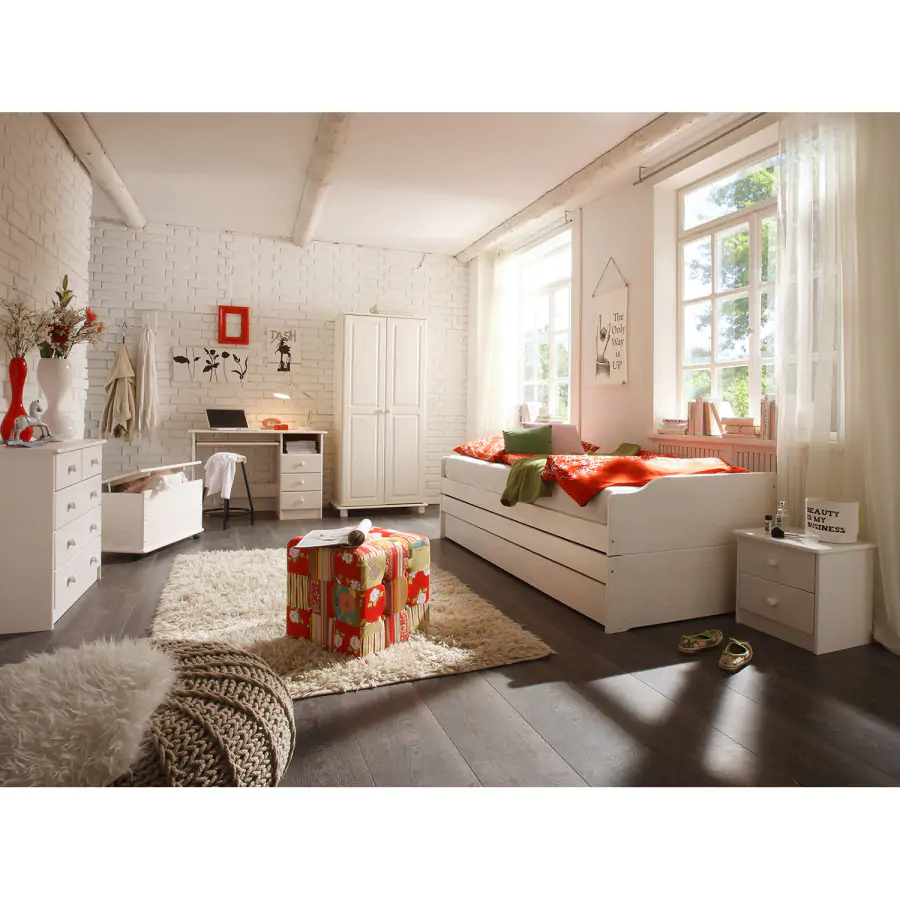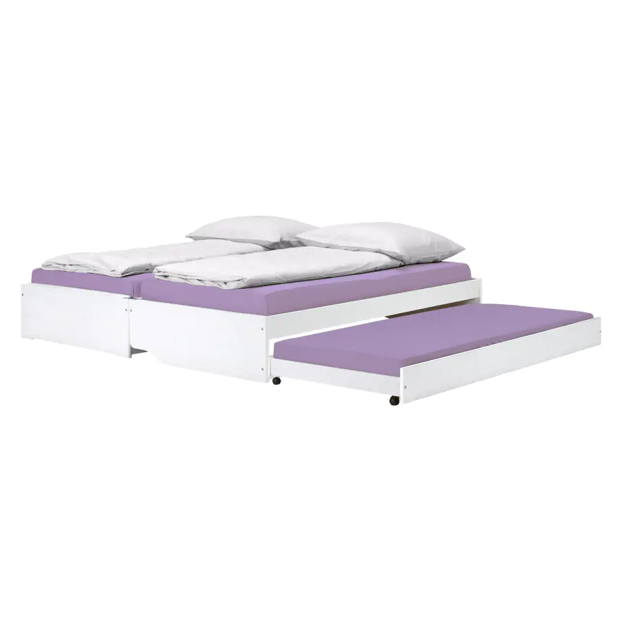 Rozkládací postel/pohovka je vyrobena z masivní borovice, barevné provedení bílý lak. Postel rychle a snadno rozložíte na dvě nebo tři lůžka. Lamelové rošty jsou součástí postele (šířka lamely je 6,5 cm). Matrace nejsou v ceně postele, lze je dokoupit zvlášť. Doporučený rozměr matrace je 90 × 200 cm. Výška k bočnici postele je 45 cm. Do rozložené pohovky Fenix je možno použít libovolně vysoké matrace, v případě složení postele doporučujeme použít do přídavných lůžek matrace do výšky 11 cm. Dodáváno v demontu.