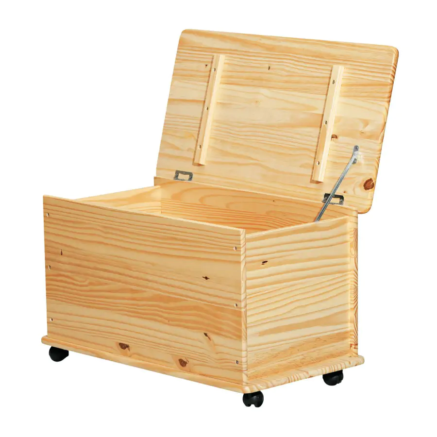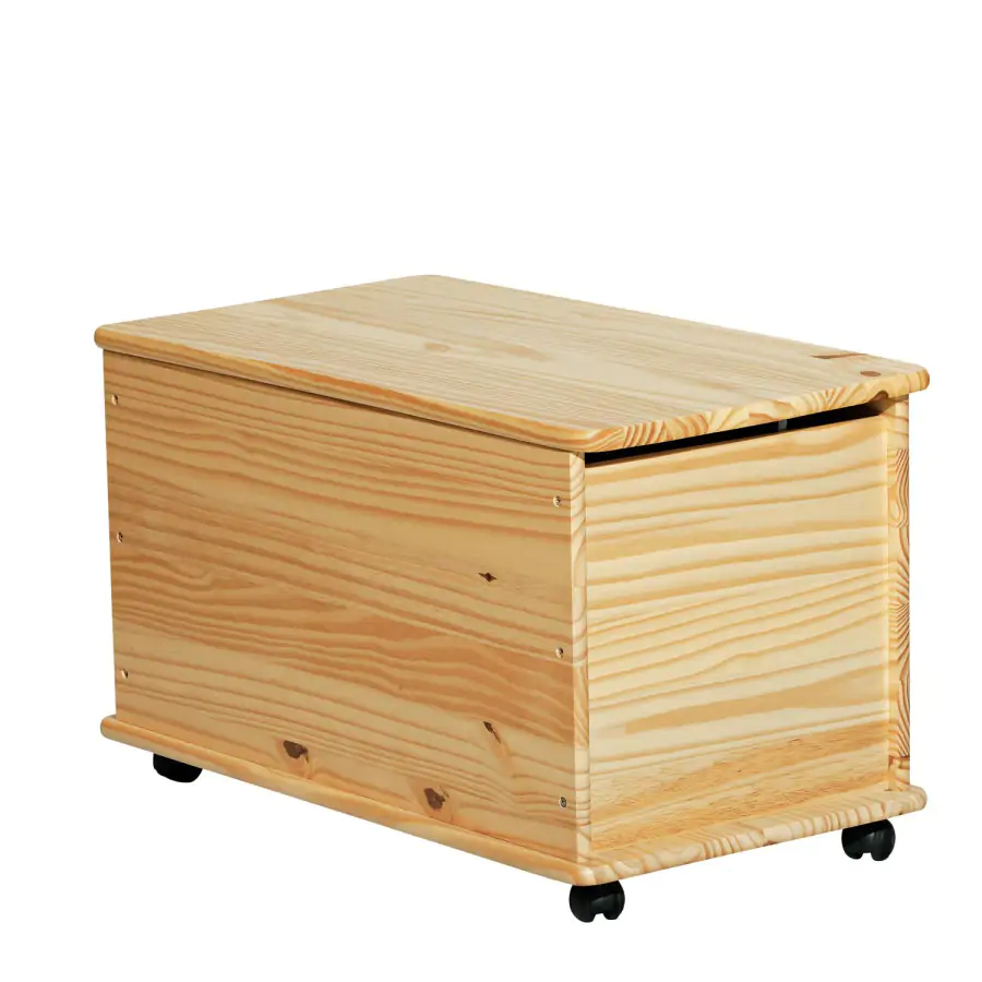 Provedení: Dřevěná truhla je vyrobena z lakované masivní borovice v přírodním odstínu. Truhla disponuje čtyřmi kolečky, díky nimž ji můžete lehce přemístit dle potřeby. Tato truhla poskytuje dostatek prostoru k uložení nejen hraček, ale také například lůžkovin. Zboží je dodáváno v demontu.