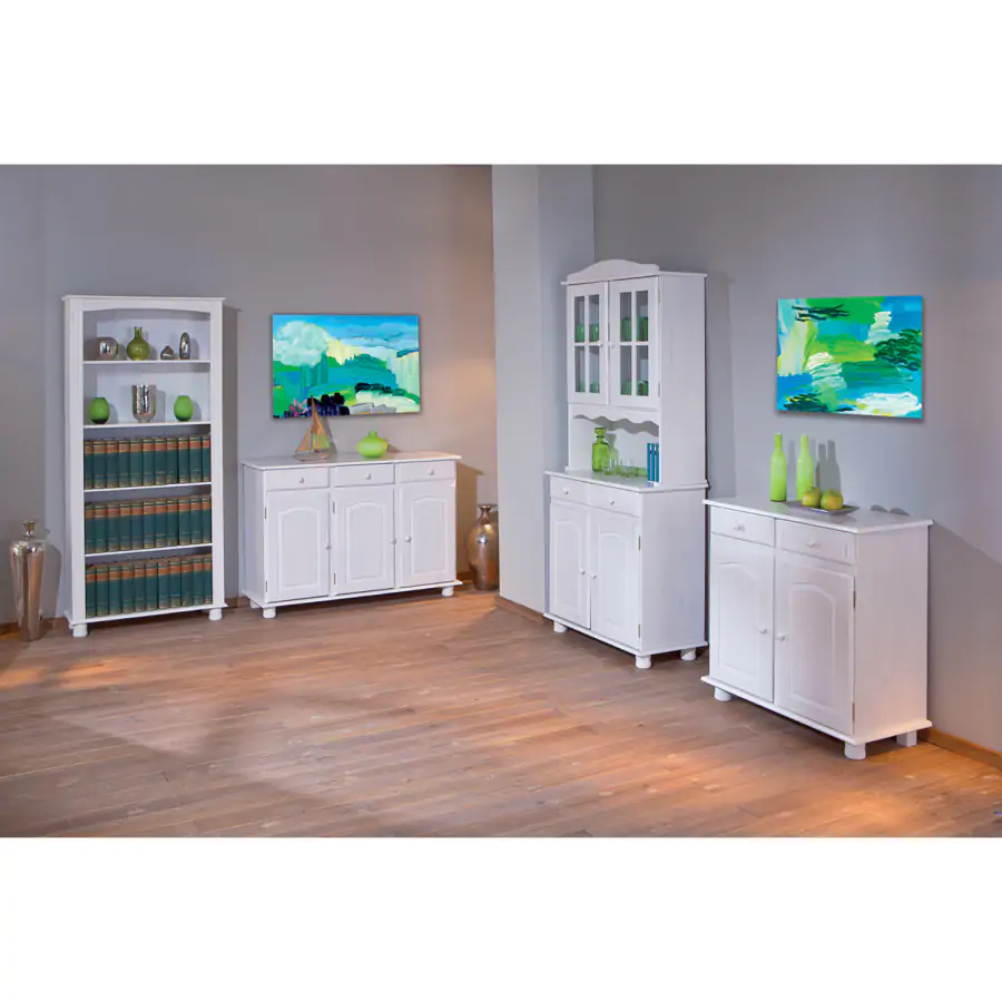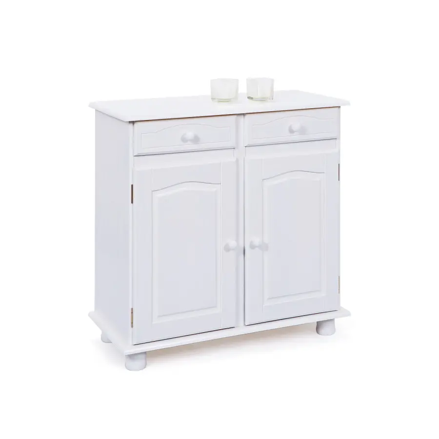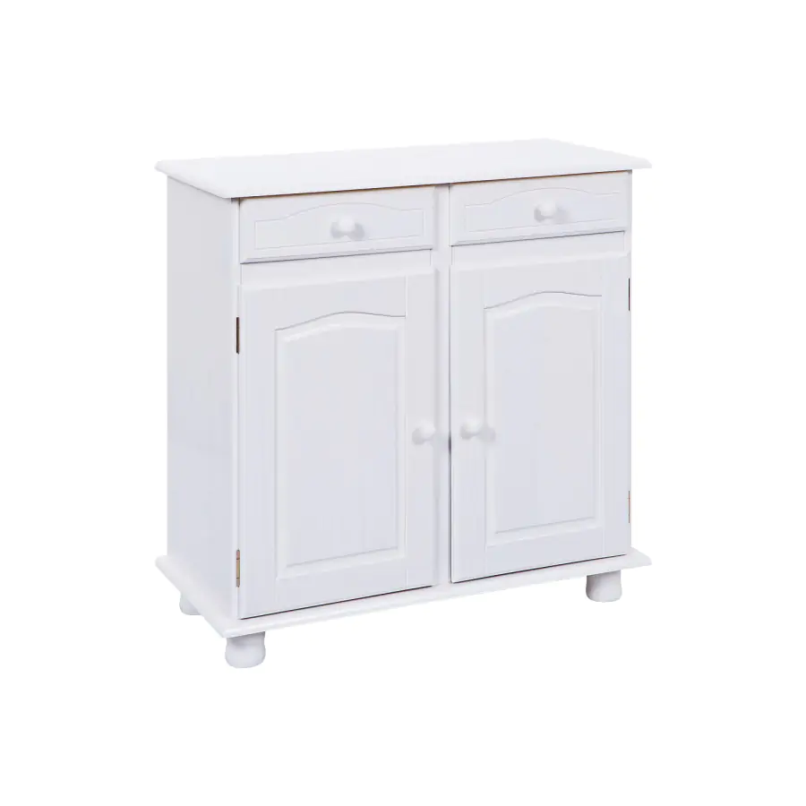 Komoda Lovi je vyrobena z masivní borovice, barevné provedení bílý lak. Obsahuje 2 malé zásuvky s kovovými pojezdy a 2 dvířka. Dodáváno v demontu. UPOZORNĚNÍ: bílý lak nezakrývá přirozenou kresbu a strukturu dřeva – ta zůstává po nalakování viditelná. Nejedná se o plně krycí nátěr, ale o povrchovou úpravu, která ponechává dřevu jeho charakter.