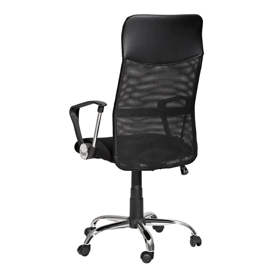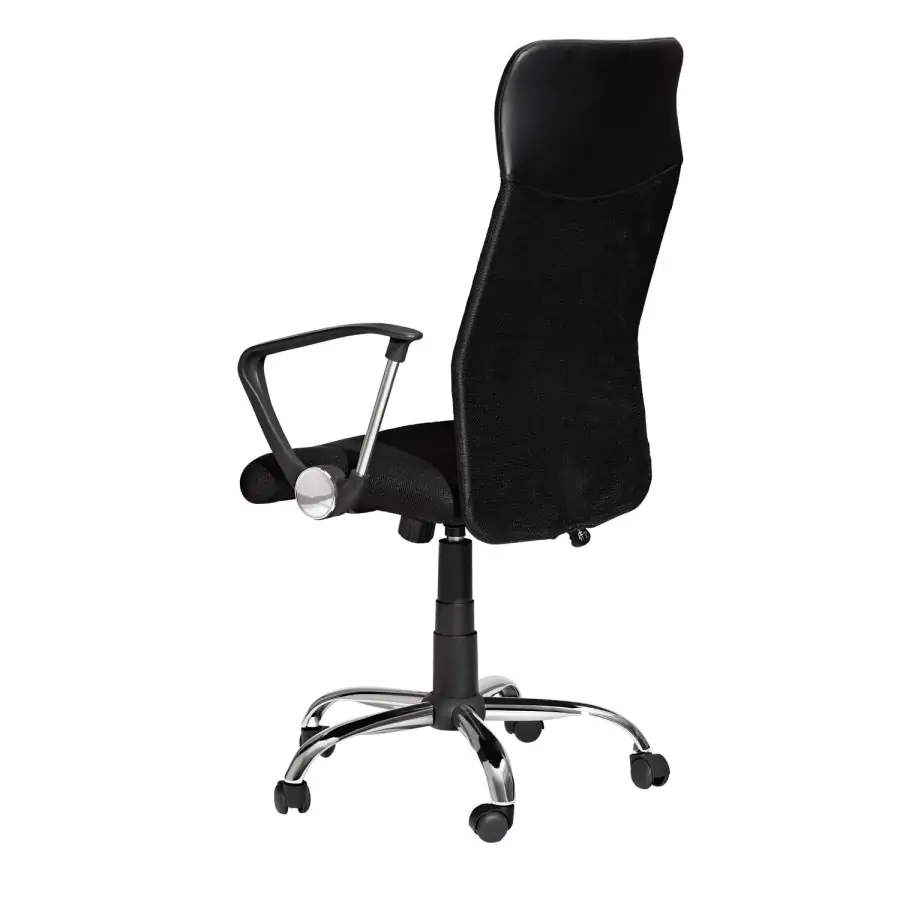 Provedení: Moderní kancelářská židle PREZIDENT je vybavena odnímatelnými područkami, chromovaným pětiramenným křížem s plastovými kolečky a posuvnou zádovou výstuhou. Tato židle je otočná a výškově nastavitelná pomocí plynového pístu. Vysoké opěradlo je potažené textilní prodyšnou síťovinou a v horní části imitací kůže. Sedák je čalouněný membránovou tkaninou. Židle jsou určeny k sezení v jednosměnném provozu a v běžném kancelářském prostředí, či domácnosti. Nosnost židle je 120kg. Židle je dodávána v demontu.