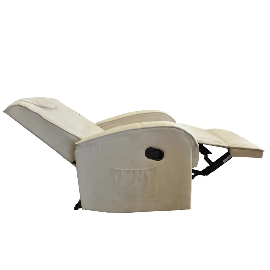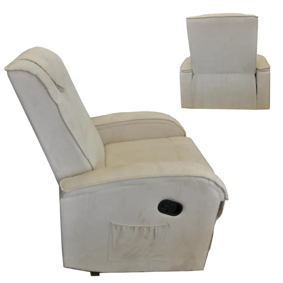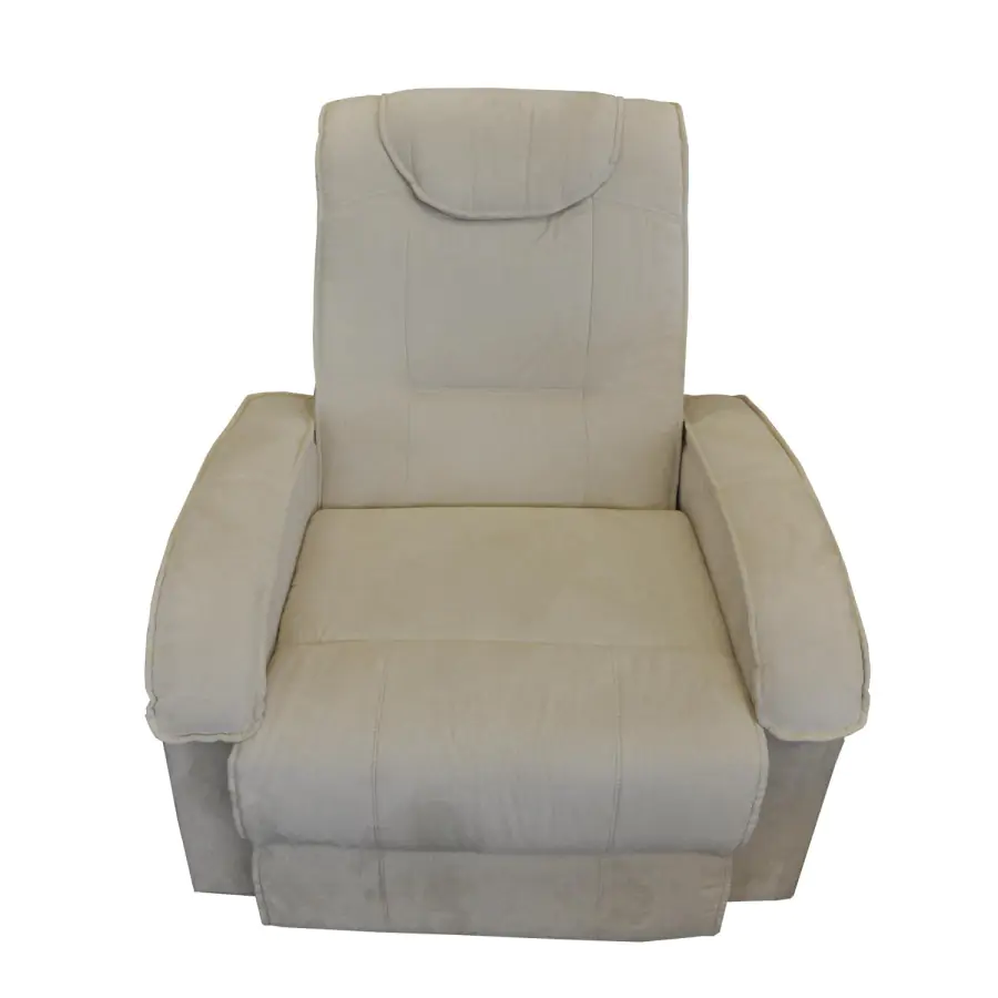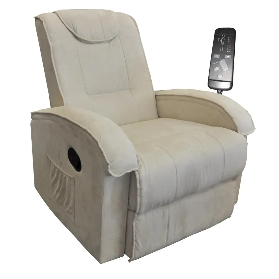 Masážní křeslo je čalouněno potahem v imitaci broušené kůže, barevné provedení béžová. Elektrické ovládání, 8 masážních programů, 2 stupně intenzity, nastavení oblasti masáže (zádová nebo bederní) automatické vypnutí po 15 nebo 30 minutách. Rozměr sedáku (š/h) 53 × 54 cm, výška sedu 46 cm výška opěradla 63 cm, výška područek 58 cm. Křeslo je mechanicky polohovatelné, zapřením se zády a přenesením váhy na opěrák dojde k jeho sklopení dozadu a k vysunutí podnožky. Po předklonění se opěrák a podnožka vrátí zpět do původní polohy. Opěrku zad a nohou nelze polohovat nezávisle.