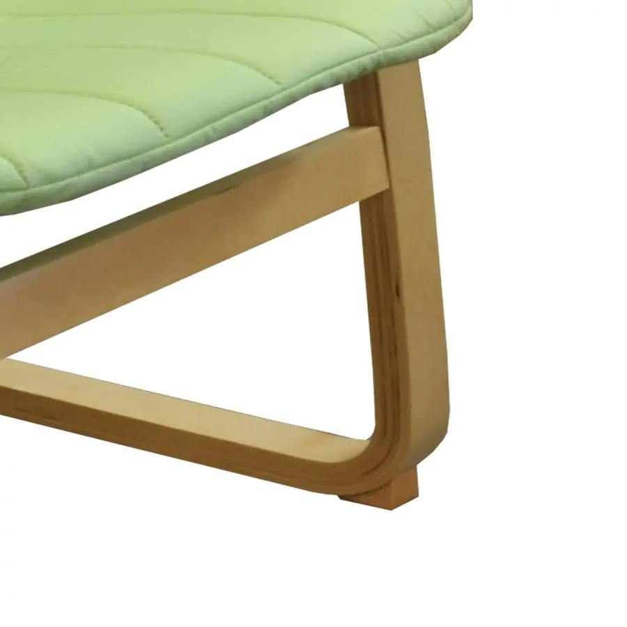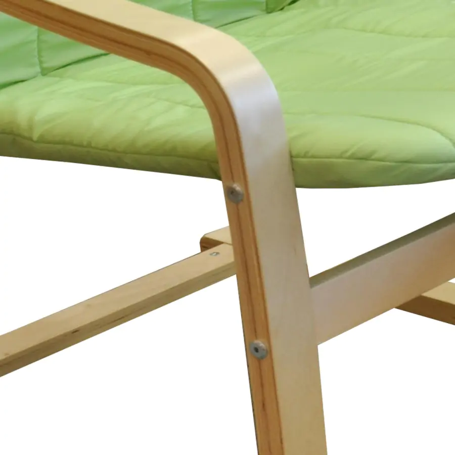 Relaxační křeslo je vyrobeno z ohýbaného masivního dřeva s rovnými područkami, bavlněný potah v barevném provedení světle zelená. Dodáváno v demontu.