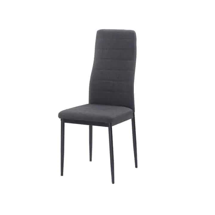 Jídelní židle COLETA NOVA. Vhodná do moderní kuchyně či jídelny. Velmi elegantní provedení, oceníte navíc maximální pohodlí díky čalouněnému sedáku i opěradlu. Nohy jsou vyrobeny z černého kovu, židle je čalouněna tmavě šedou látkou. Dodávána v demontu.
