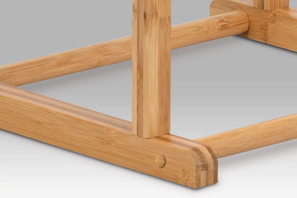 Praktický němý sluha z bambusu, který nejen že bude spolehlivým pomocníkem, ale také pohledným doplňkem, který Vám budou všichni závidět. Na tohoto pomocníka můžete odložit mnoho kusů svého oblečení a vyhnout se tak rannímu stresu z hledání svého oděvu do práce. S naším němým sluhou se Vám takto nepříjemná situace vyhne obloukem. Rozměr: 39x103x35 cm