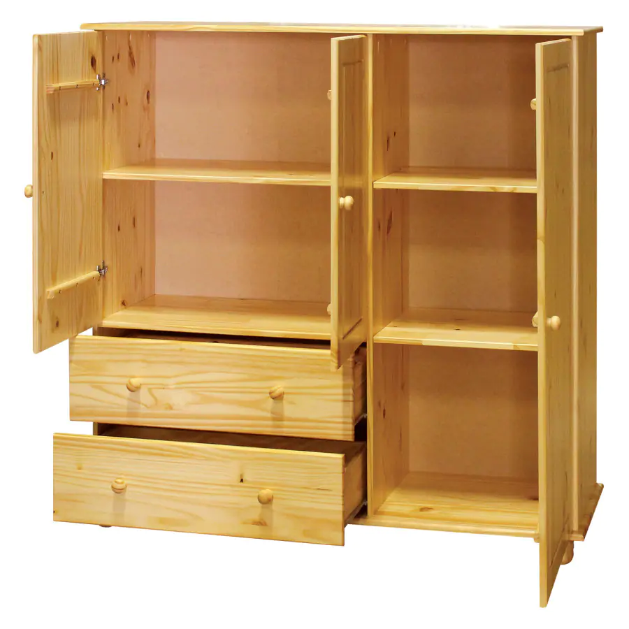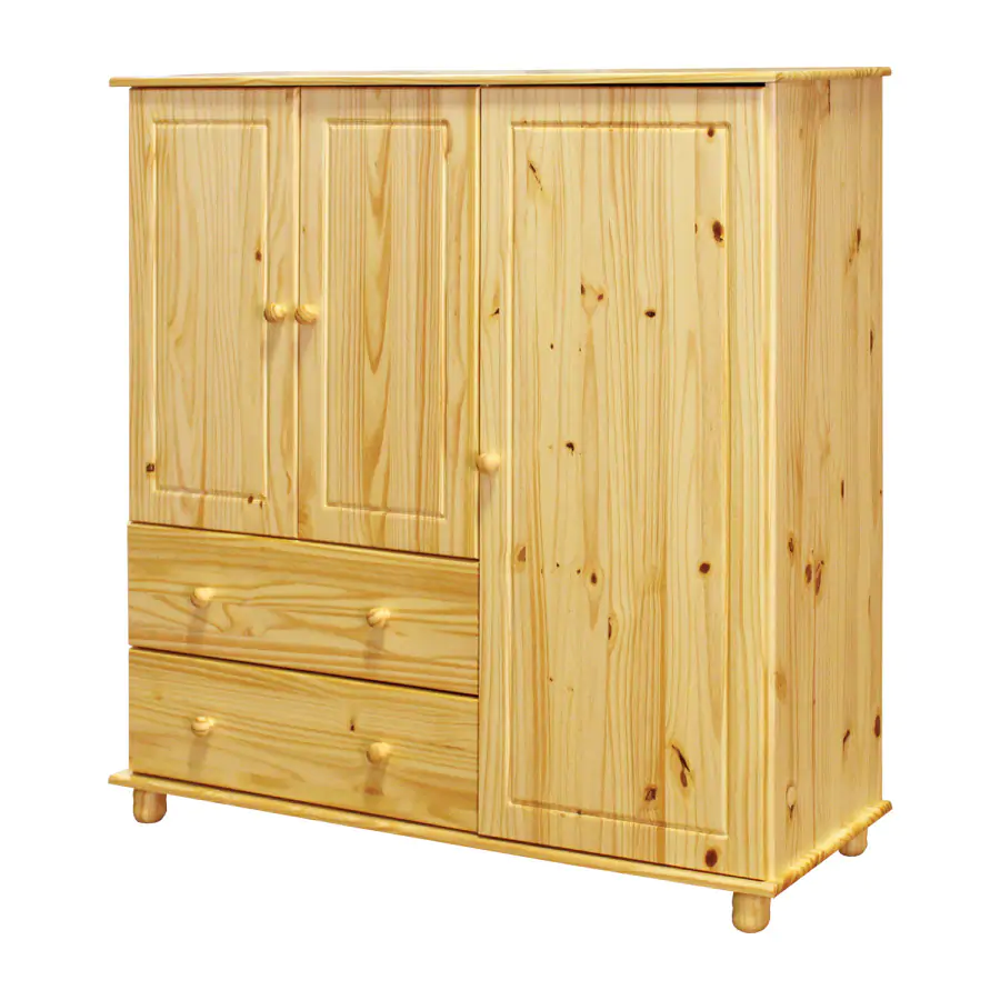 Provedení: Prádelník 8018 v provedení masiv borovice je prakticky rozdělen. V širší části je prostor s jednou variabilní policí opatřený dvířky, pod ním se pak nachází dvě široké zásuvky s kovovými pojezdy. V užším prostoru naleznete dvě variabilní police. Do dvou úložných prostorů snadno poskládáte nejrůznější oblečení Masivní prádelník hravě nahradí skříň. Díky svému designu najde využití v mnoha ložnicích, obývacích pokojích, ale také v halách a předsíních. Komoda je dodávána v demontu.