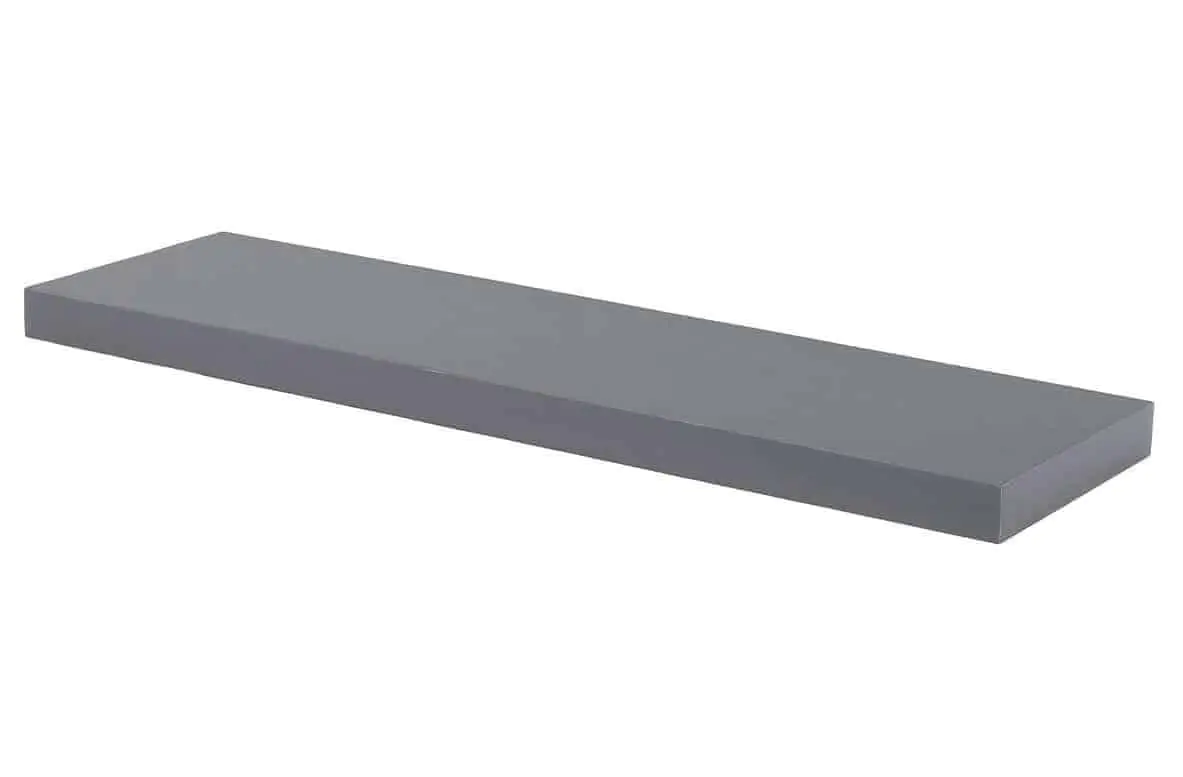 Moderní polička s jednoduchým designem bude tou pravou ozdobou Vaší domácnosti. Polička je vyrobena z materiálu MDF + lamina. Barevné provedení: Šedá vysoký lesk Balení obsahuje poličku, kovový držák poličky. Nosnost poličky je 5-15 kg v závislosti na druhu zdiva.