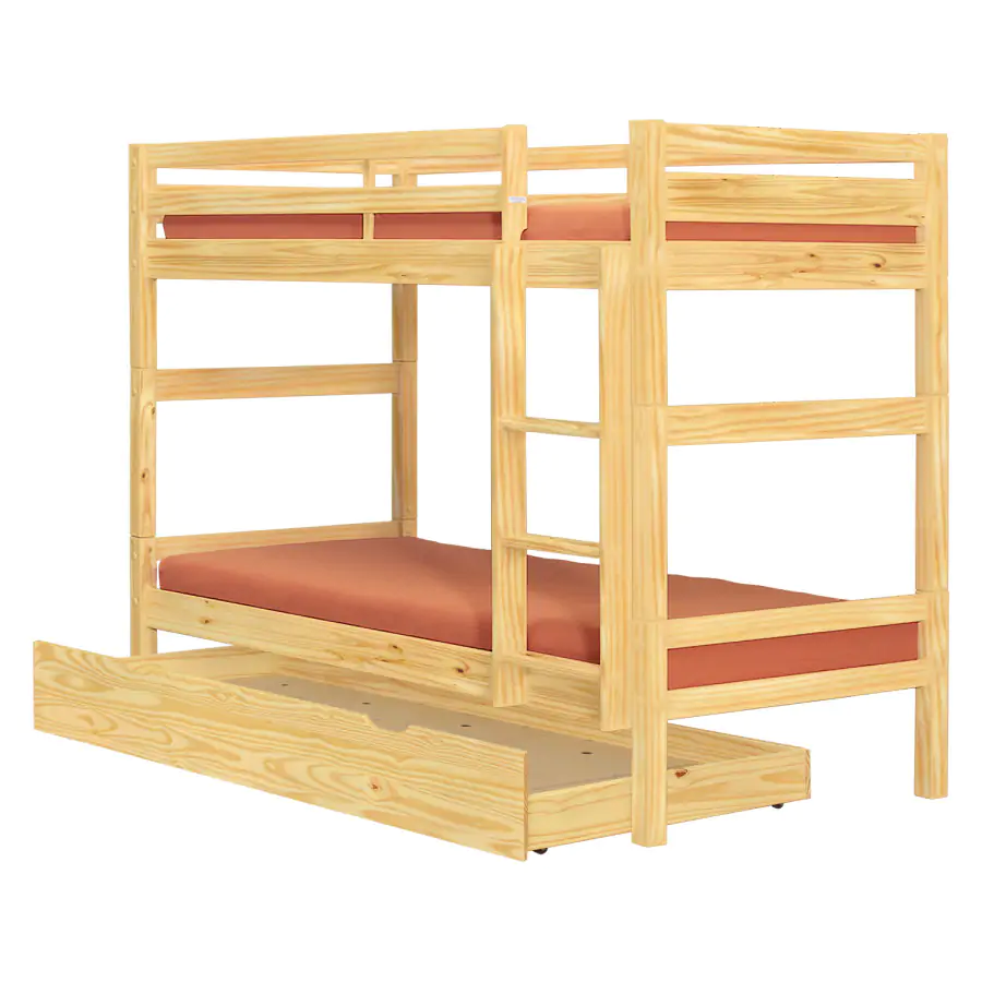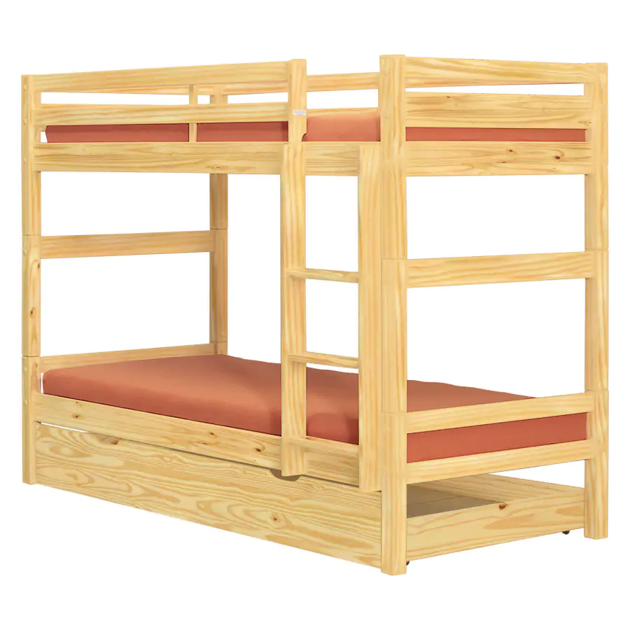 Provedení: Palanda děti doslova nadchne a budou se dohadovat, které místo bude to jejich. Za pomoci deky vytvoří útulný domeček a po schodech vylezou na improvizovanou „rozhlednu“. Palandu v provedení masiv borovice v přírodním, pouze lakovaném provedení snadno zakomponujete mezi ostatní nábytek v přírodních barvách. Můžete ji využívat jako palandu nebo jako dvě samostatná lůžka. Palanda je dodávána včetně roštů, ale bez matrací. Doporučený rozměr matrace je 90x200cm o výšce max 15cm. V naší nabídce najdete široký výběr matrací v tomto rozměru. Nosnost 100 kg/1 lůžko Zboží je dodáváno v demontu.
