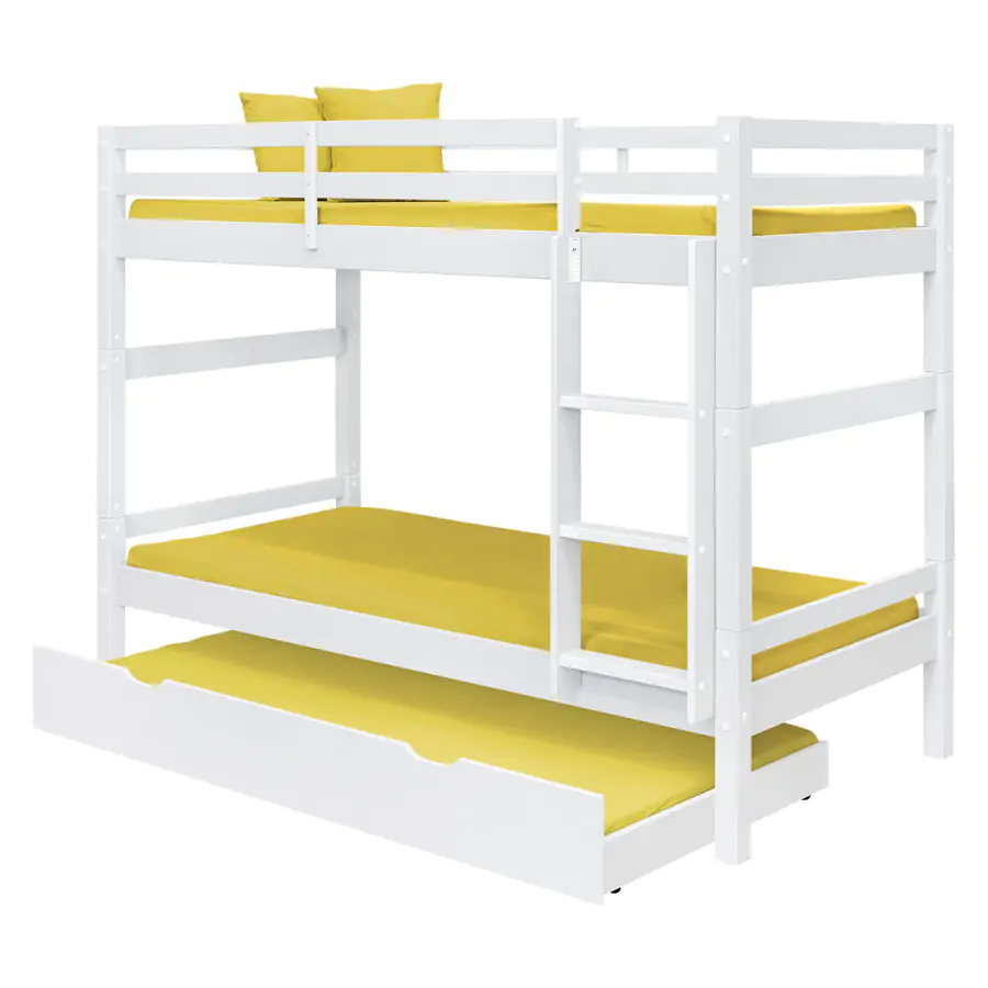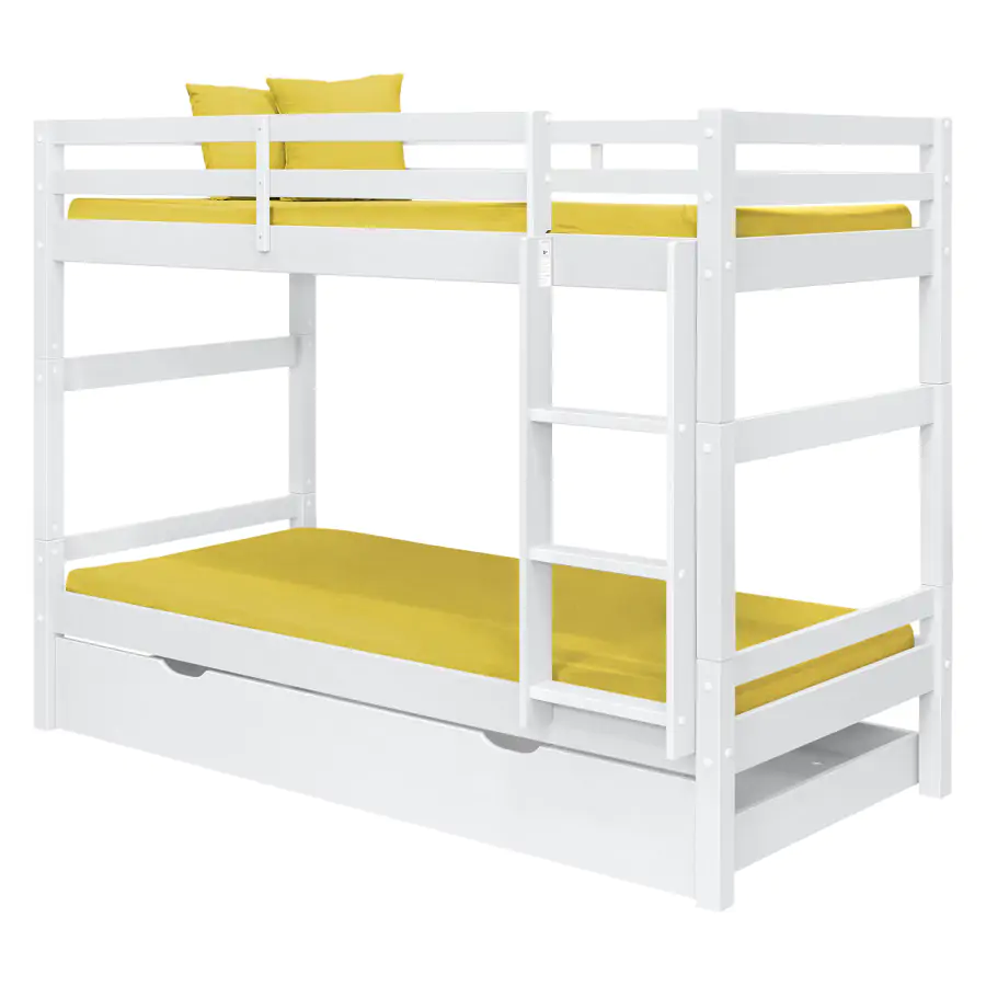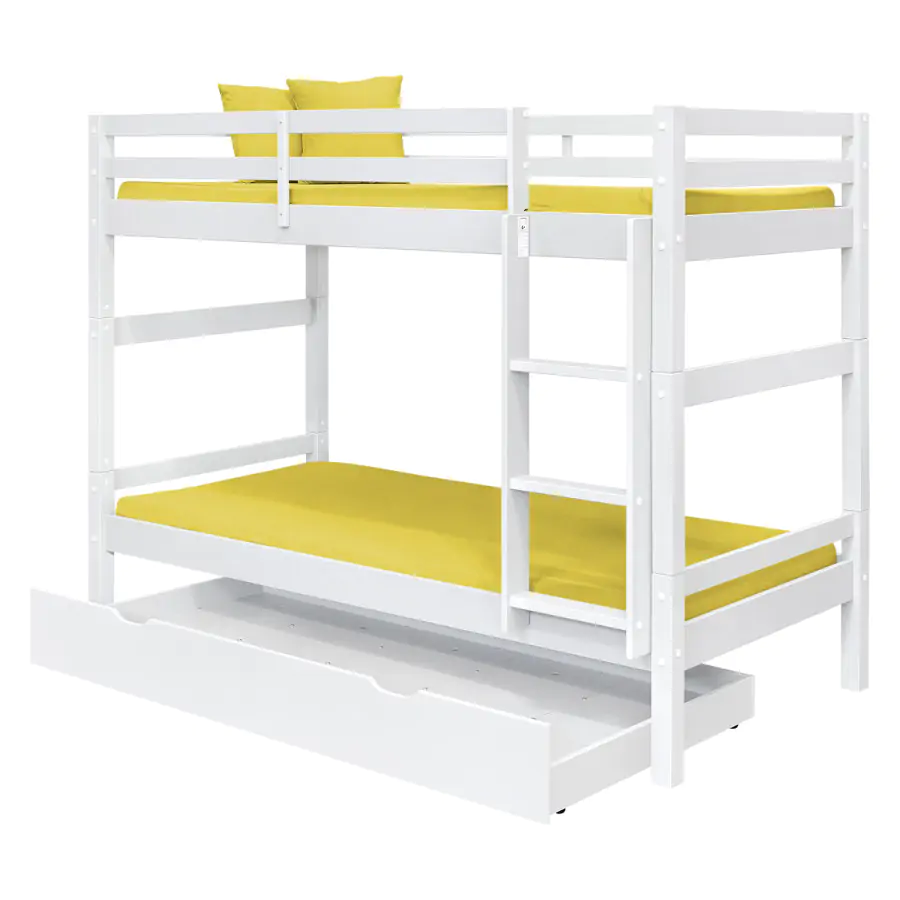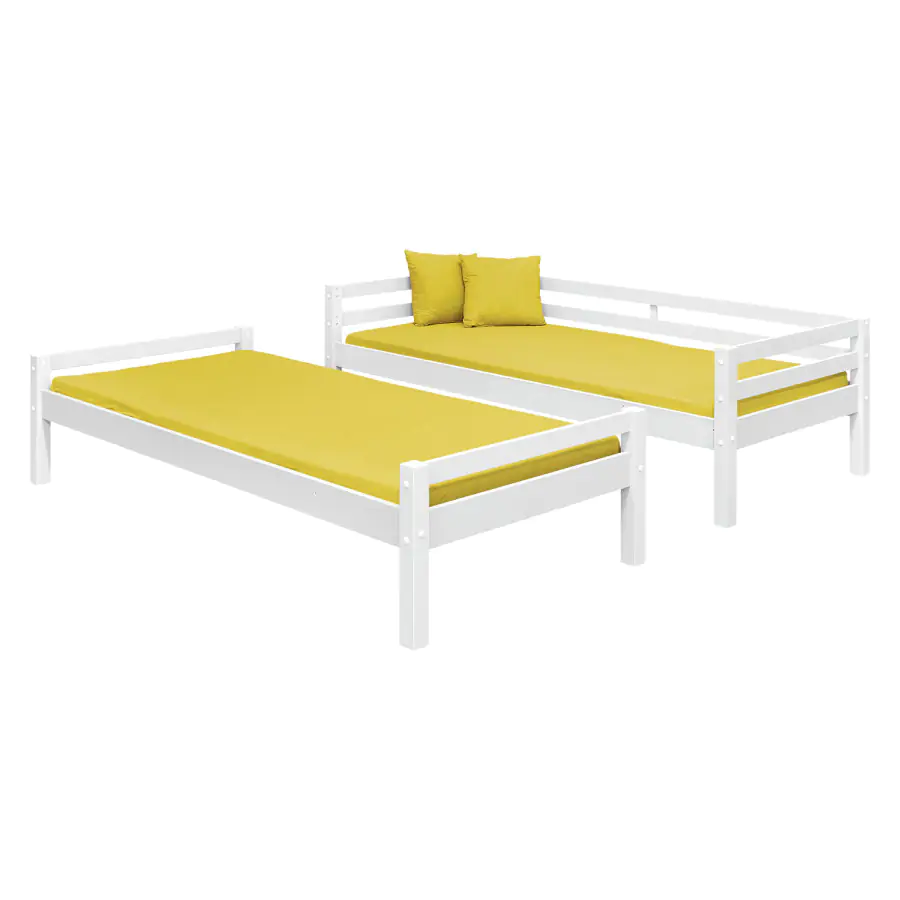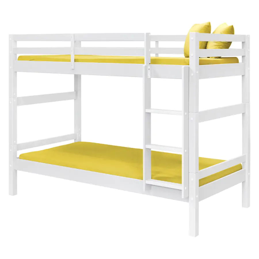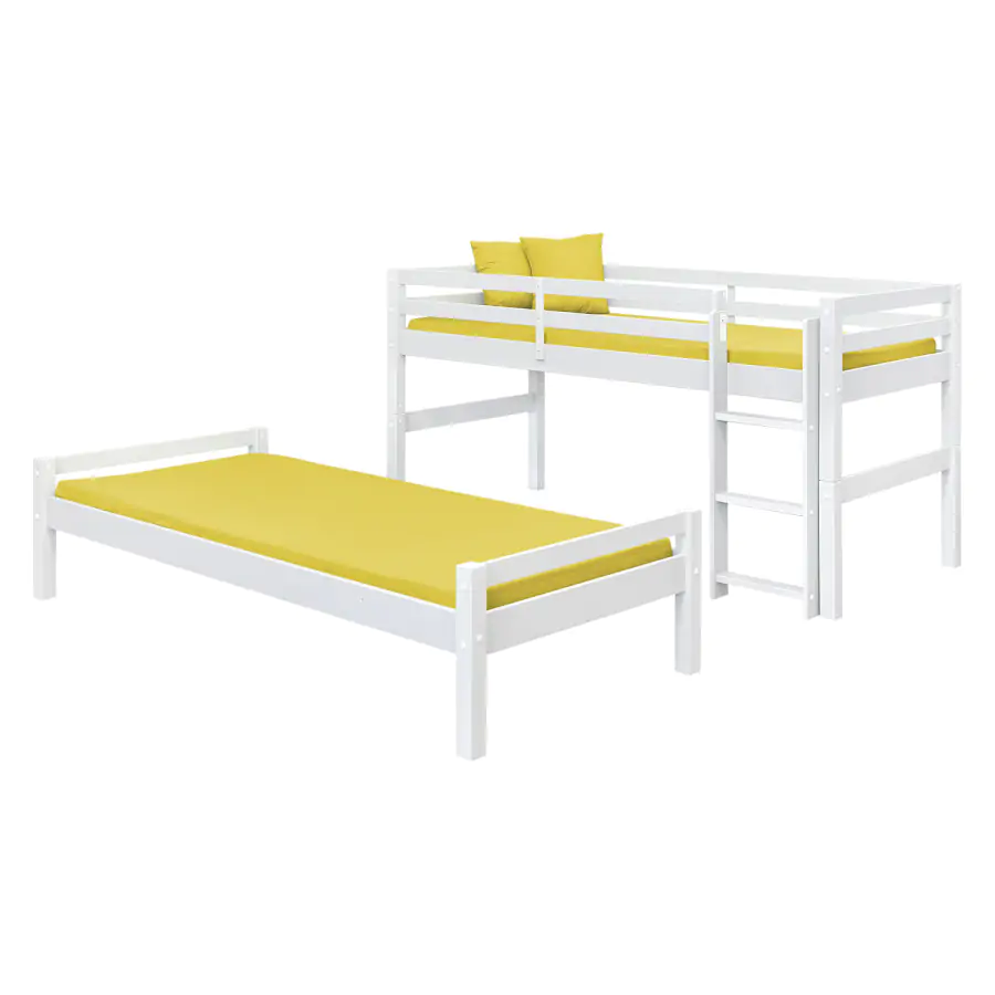 Provedení: Palanda děti doslova nadchne a budou se dohadovat, které místo bude to jejich. Za pomoci deky vytvoří útulný domeček a po schodech vylezou na improvizovanou „rozhlednu“. Palandu v provedení masiv borovice v bíle lakovaném provedení snadno zakomponujete mezi ostatní nábytek v přírodních barvách. Můžete ji využívat jako palandu nebo jako dvě samostatná lůžka. Palanda je dodávána včetně roštů, ale bez matrací. Doporučený rozměr matrace je 90x200cm o výšce max 15cm. V naší nabídce najdete široký výběr matrací v tomto rozměru. Nosnost 100 kg/1 lůžko Zboží je dodáváno v demontu.
