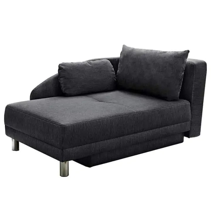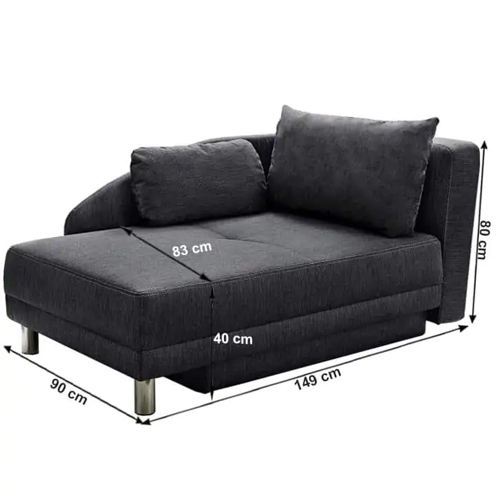 Rozkládací pohovka LAUREL s úložným prostorem, pravé provedení. Je čalouněna šedočernou látkou. Jednou z jejích výhod je funkce rozkladu, díky které proměníte pohovku na pohodlné lůžko s plochou na spaní 80x195 cm. Součástí je úložný prostor a 2 polštáře. Hloubka sedu: 83 cm Dodávaná v demontu.