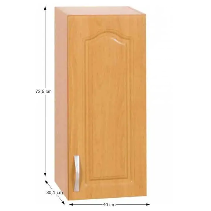 Horní kuchyňská skříňka LORA MDF NEW KLASIK W40 / 735 v pravém provedení, s dvířky. Materiál: korpus: DTD laminovaná / dvířka: MDF Barevné provedení: olše Dodávaná v demontu.