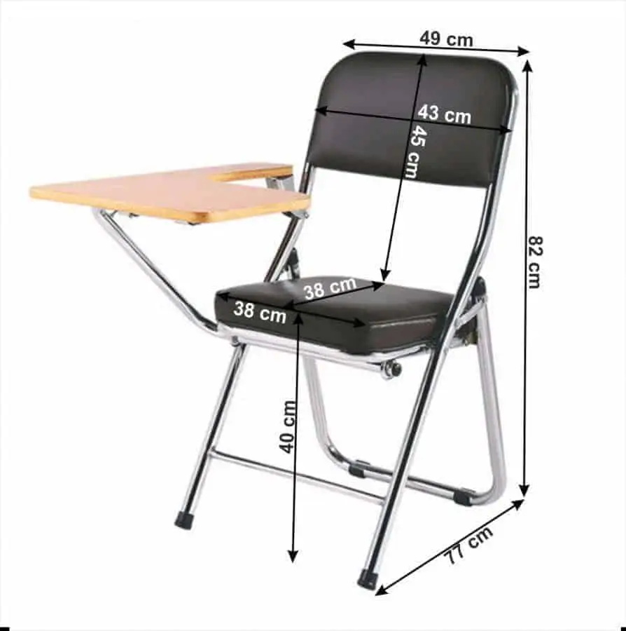 Konferenční židle se zajímavým řešením, které šetří Vaše místo. Pokud židli zrovna nepotřebujete, snadno ji složíte, aby nezabírala potřebný prostor. Konstrukci tvoří pevný kov v barvě chromu. Celkový design židle dotváří praktický stůl v přírodní barvě. Čalouněna je černou ekokůží. Šířka sedu: 38 cm Hloubka sedu: 38 cm Zádová opěrka (ŠxV): 43x45 cm Dodávaná v demontu.