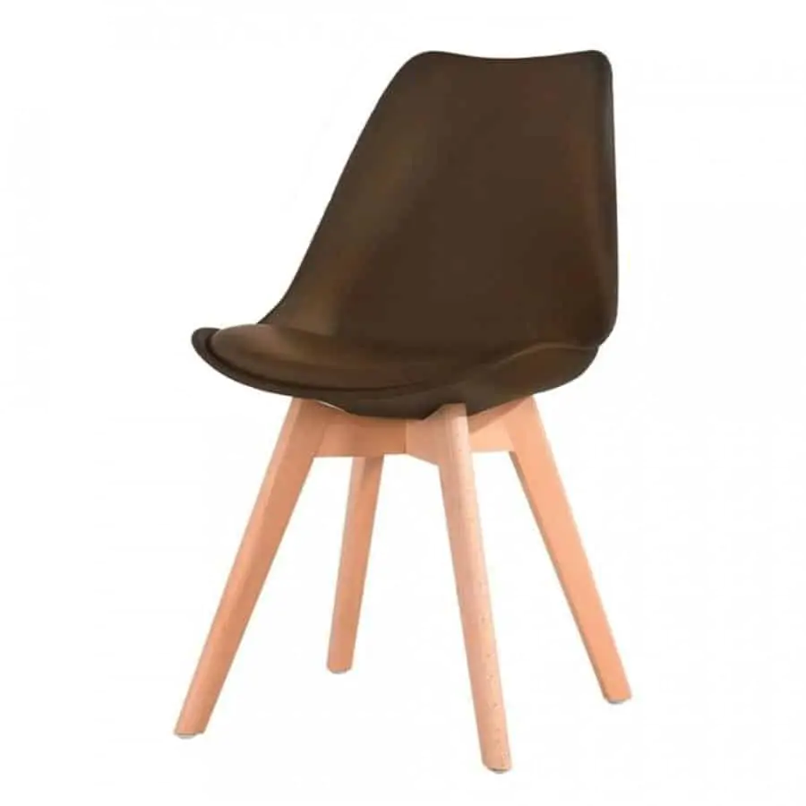 Moderní jídelní židle BALI 2 NEW. Pevné dřevěné nohy v odstínu buk. Plastový sedák a opěrák je vyroben v tmavě hnědé barvě. Abyste se při sezení cítili maximálně komfortně, je sedací část čalouněná ekokůží a vyplněná vložkou, čímž je zajištěno extra měkké sezení. Hloubka sedu: 41 cm Dodávaná v demontu.