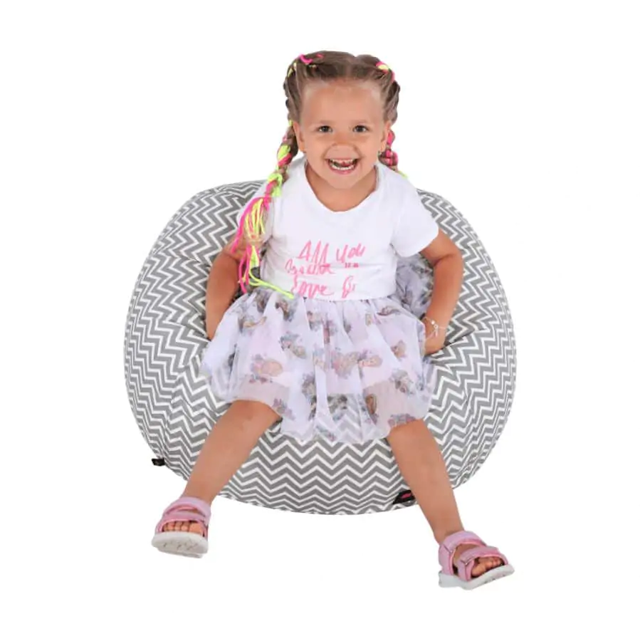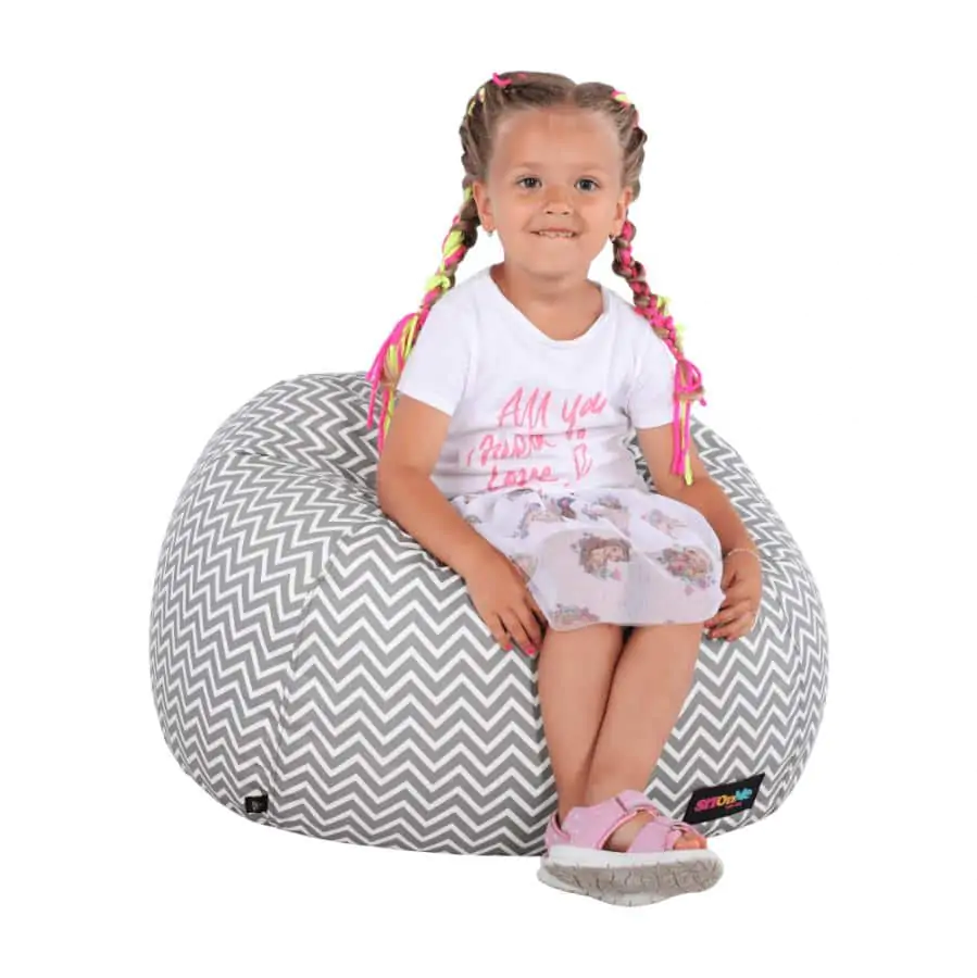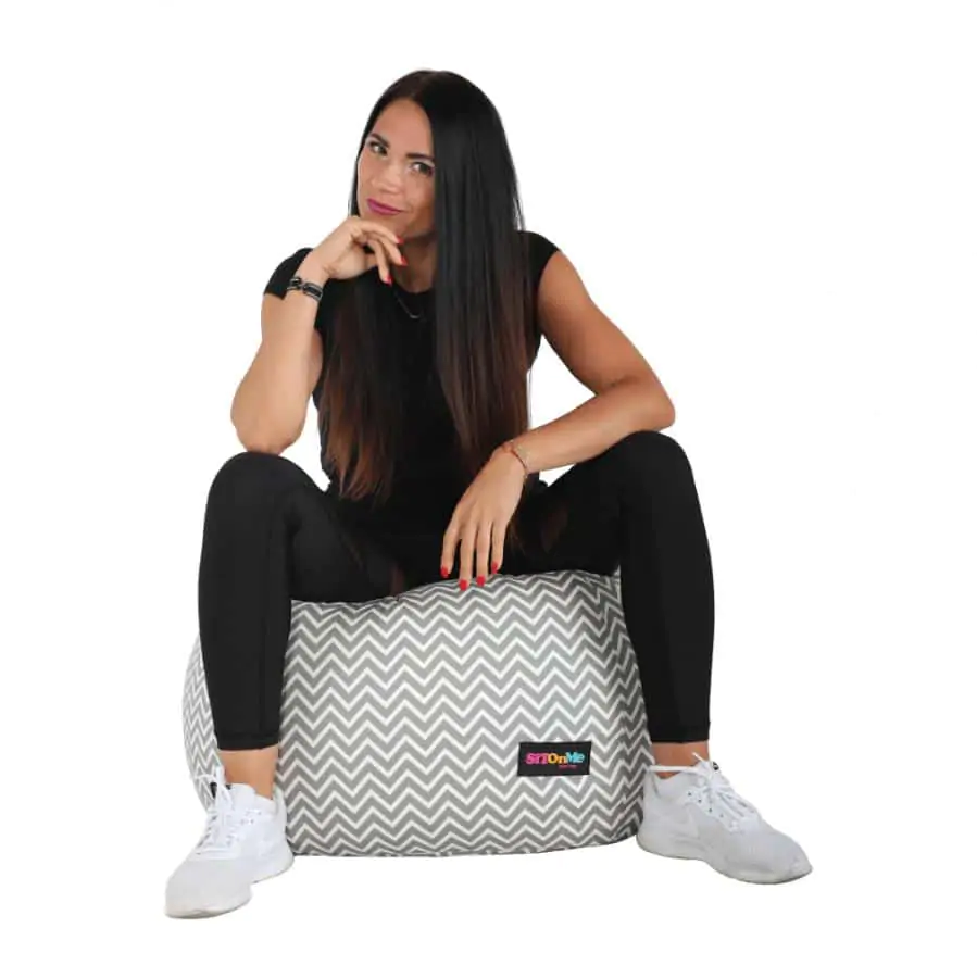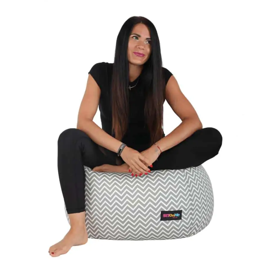 Moderním a vyhledávaným prvkem do domácnosti jednoznačně patří sedací vak. Vy ještě nemáte ten svůj? Co byste řekli na krasavce jménem Gomby. Už na první pohled si vás získá svým jedinečným designem. Jeho výplň tvoří polystyrénové kuličky, které se přizpůsobí každému záhybu těla. Vyroben je z látky v provedení šedo-bílá / cik cak vzor. Své využití najde na sezení, vyložení nohou nebo hraní různých her. Materiál: látka / EPS (polystyrenové kuličky) Rozměry (HxV): 60x50 cm Nosnost: 90 kg Objem 120 litrů