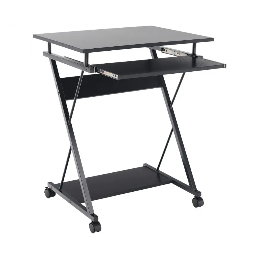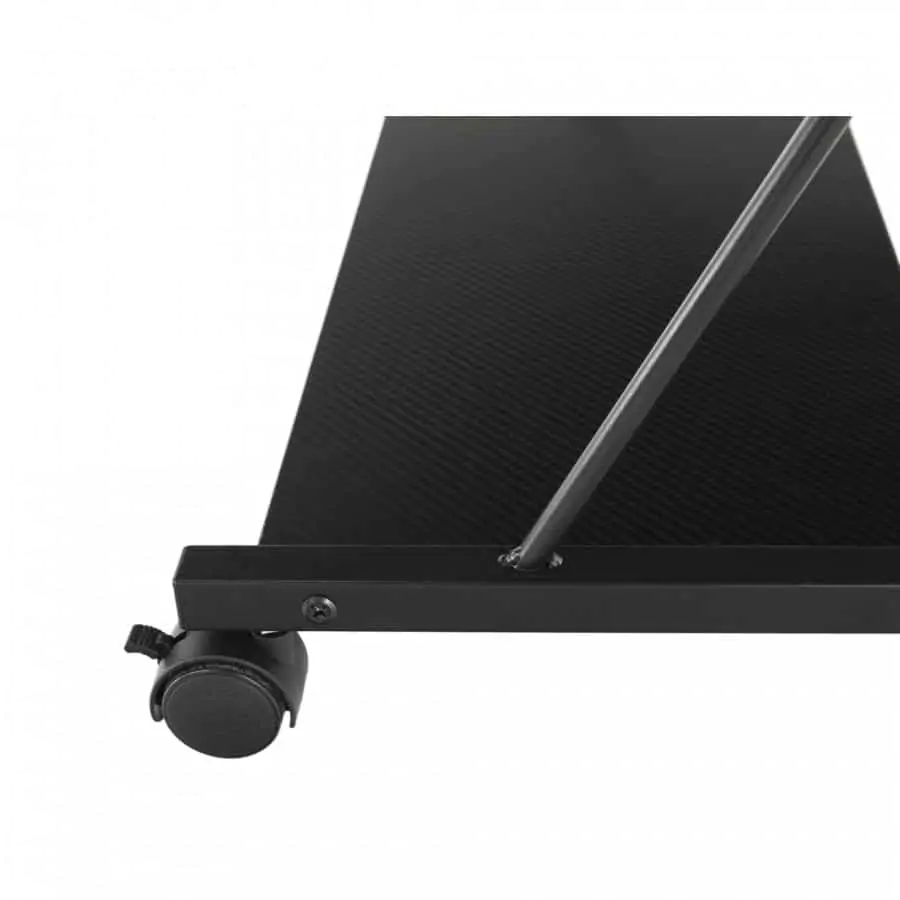 Pojízdný PC/herní stůl TARAK oceníte v malých místnostech. Jednoduchou manipulaci mají na starosti kolečka. Vyrobený je z kovu s černým nátěrem. Plát stolu, výsuv na klávesnici a police jsou z DTD foliované v černém provedení. Police se nachází ve spodní části stolu. Stolek doporučujeme doplnit o herní židli. Dodáváno v demontu.