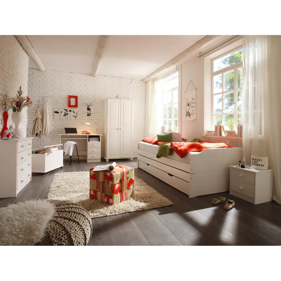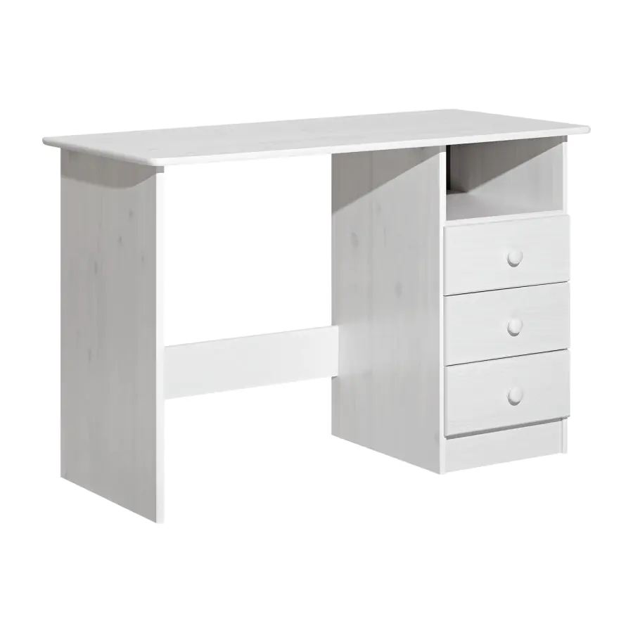 PC stůl 8844B je vyrobený z borovice masiv v barevném provedení bílého laku. Stůl obsahuje tři zásuvky s kovovými pojezdy s montáží možnou pouze na pravou stranu. Stůl nemá výsuv pro klávesnici. Do prostoru nad zásuvkami pak odložíte rozečtenou knihu či rozdělanou práci. Stůl se hodí nejen do studentského pokoje, ale i do pracovny, která je vybavená masivním nábytkem v podobném provedení. Dodáváno v demontu.
