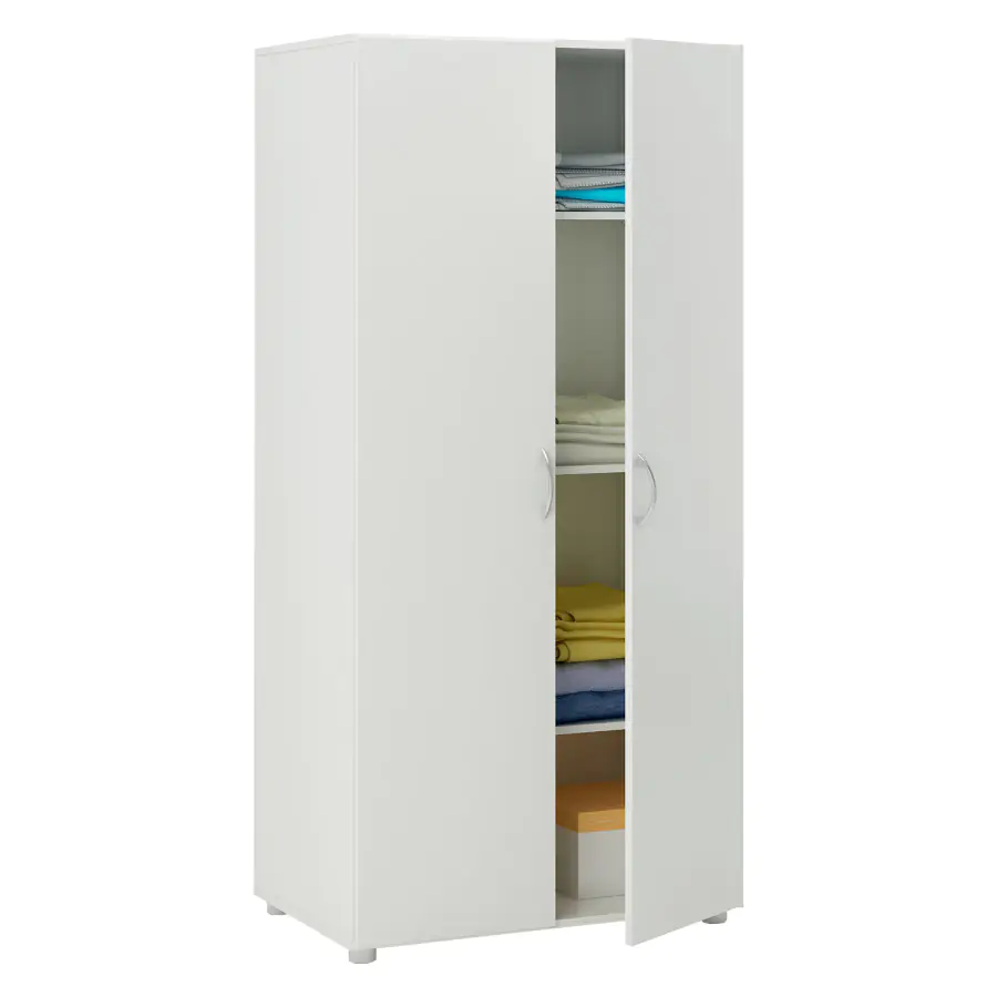 Skříň 2dveřová BEST v barevném provedení bílé barvy se bude hodit do všech místností vybavených nábytkem ve stejném barevném provedení. Skříň je rozdělena na dvě poloviny. Jedna polovina s šatní tyčí a ve druhé polovině tři police, z toho dvě variabilní. Ke skříni je možno dokoupit nástavec 2dveřový BEST bílý. Rozměr police (š/h) 38 × 40 cm. Dodáváno v demontu.
