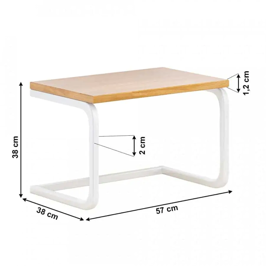 Odkládací police nad mikrovlnnou troubu se stane praktickým doplňkem Vaší kuchyně. Je vyrobena z bílého kovu a doplněna vrchní MDF deskou v provedení dub natural. Tloušťka tyče: 2 cm Tloušťka materiálu desky: 1,2 cm Hodí se na odložení koření, dóz s cukrem, solí nebo kávou. Dodávaná v demontu.