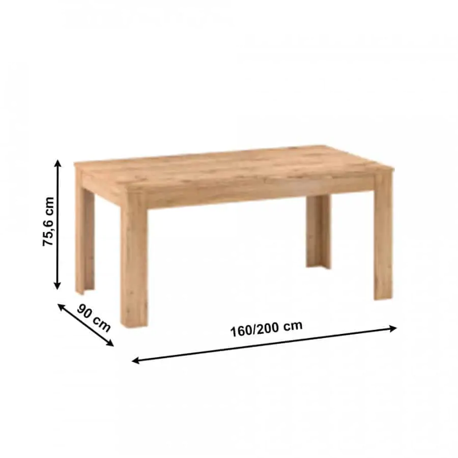 Jídelní stůl PUSAN S v příjemném provedení dub apalačský s bílou na vnitřních rozích stolu je snadno kombinovatelný s různými typy nábytku. Stůl je obdélníkového tvaru a vyrobený je z laminované dřevotřísky. Má funkcí rozkladu, díky čemuž se při něm naobědvá až 8 osob. Vlastnosti stolu: Materiál: laminovaná DTD / MDF Barevné provedení: dub apalačský Rozměry (ŠxHxV): 160 / 200x90x75,6 cm Tloušťka materiálu: 1,9 cm Vhodný pro 6-8 osob Dodávaný v demontu Vyberte si další produkty z nábytkové řady PUSAN. Ke stolu si můžete v naší nabídce vybrat také nové židle.