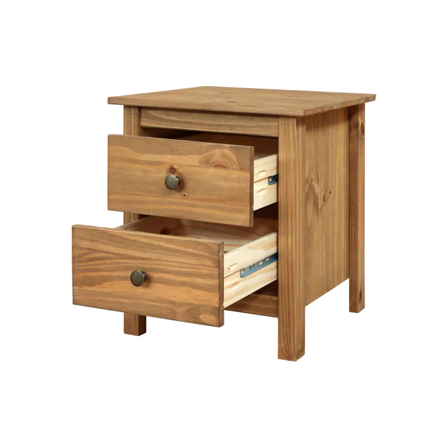 Noční stolek z masivní borovice se dvěma zásuvkami se stane praktickým doplňkem vaší ložnice. Barevné provedení: borovice voskovaná v medovém odstínu Stolek můžete využít k umístění stolní lampičky, abyste si pohodlně mohli číst vaši oblíbenou knihu v posteli. Do zásuvky si poté můžete uložit knihy a časopisy. Dodávaný v demontu.