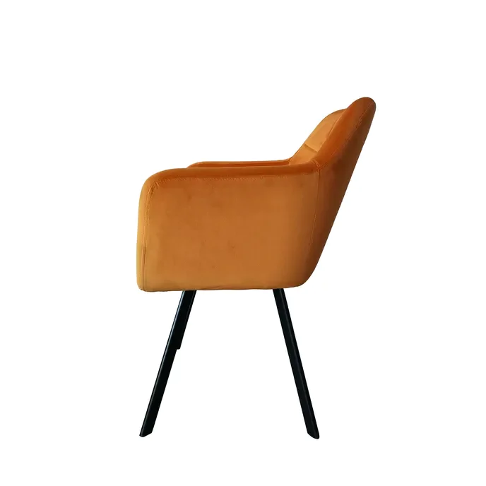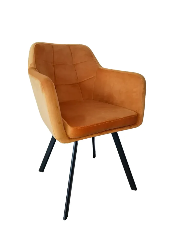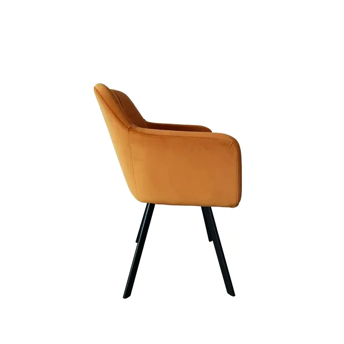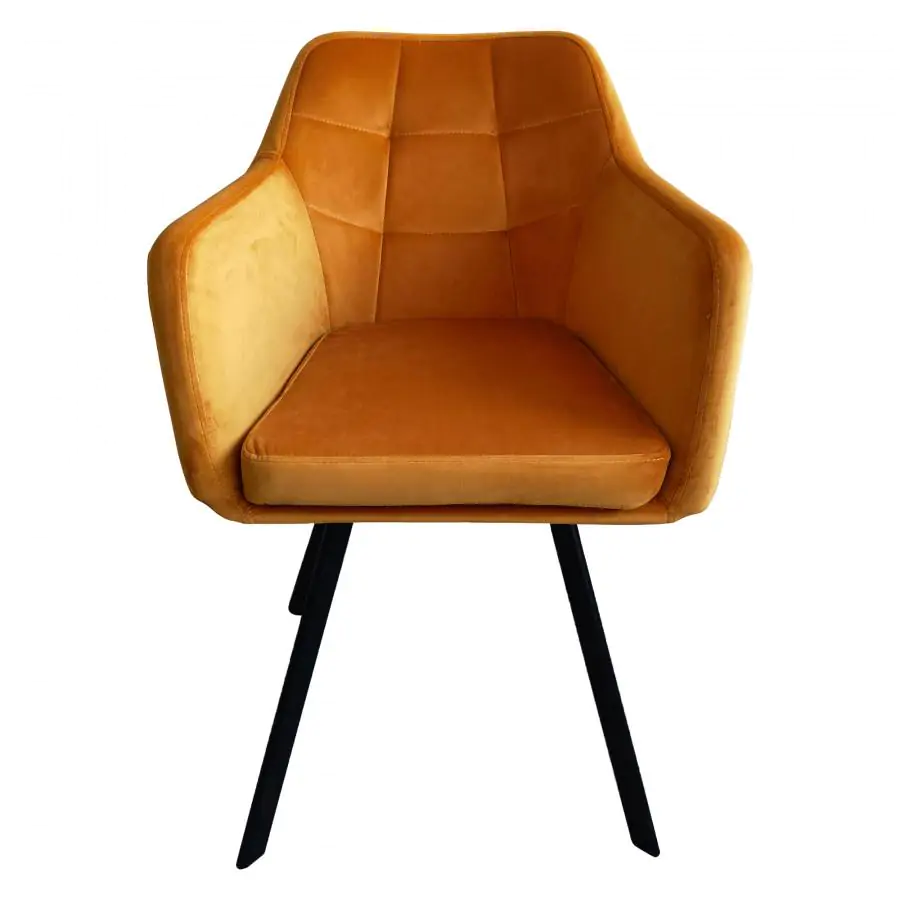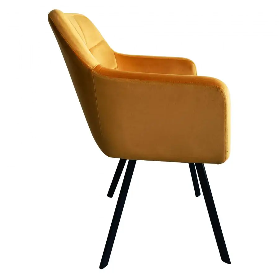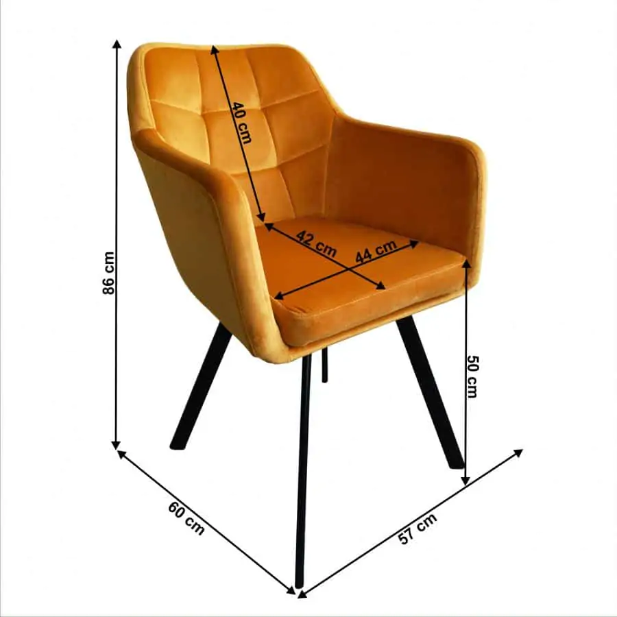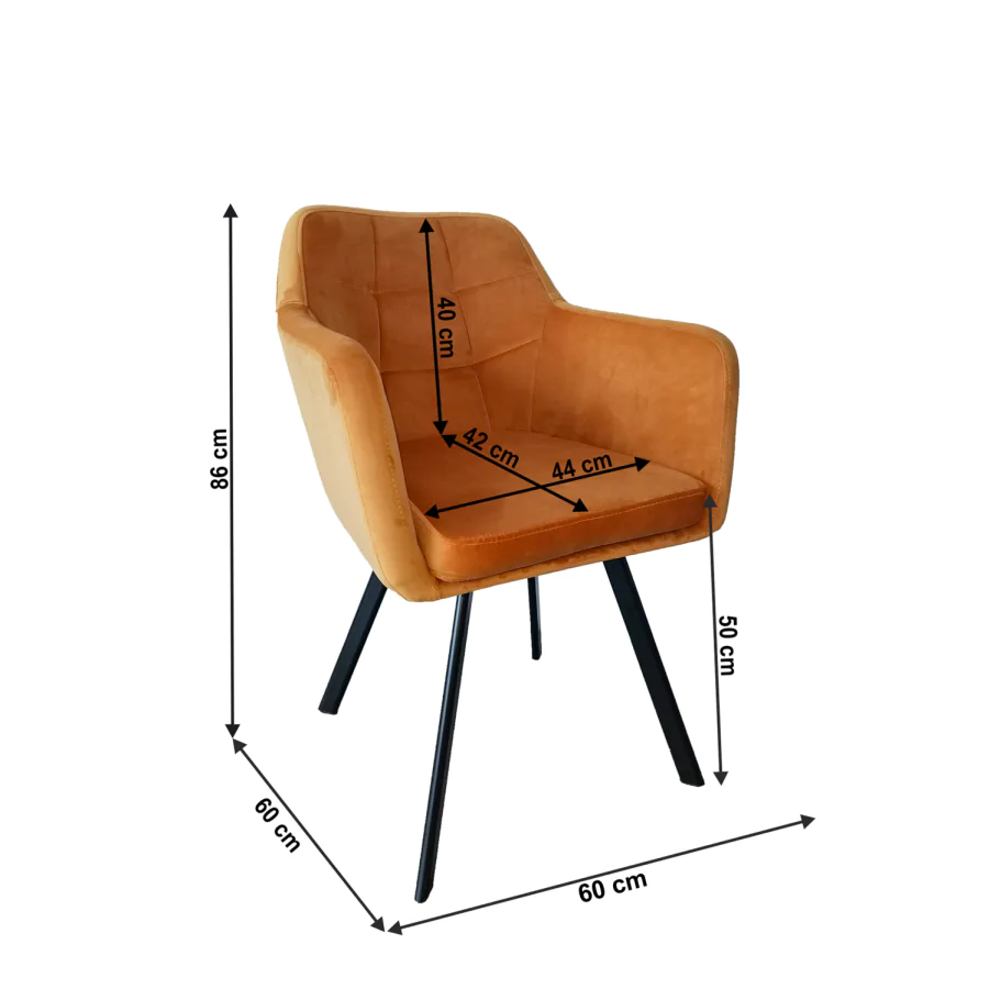 Designové křeslo ZERON NEW se stane dominantním prvkem každého interiéru. Je čalouněno sametovou látkou v hořčicovém odstínu, doplněno o kontrastní černé kovové nohy. Vhodné do jídelny, obývacího pokoje či kancelářských prostor. Oděruodolnost textílie: 80 000 oděrů Hloubka sedu: 42 cm Šířka sedu: 44 cm Dodáváno v demontu.