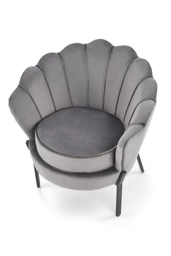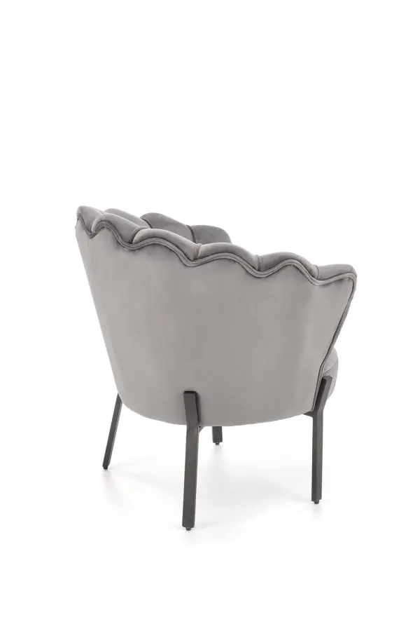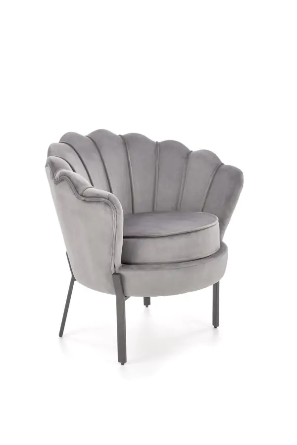 Elegantní křesílko ve tvaru mušle se hodí do obývacího pokoje, ložnice, pracovny apod. Je čalouněné šedou látkou, nožičky jsou z kovu v černé barvě. Prohlédněte si i další kousky v glamour stylu a vylaďte své bydlení k dokonalosti. Dodáváno v demontu.