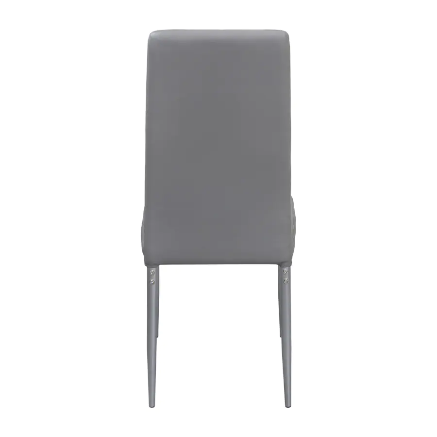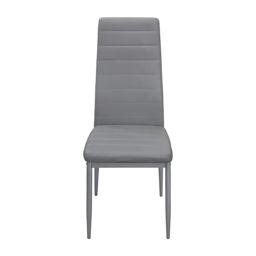 Jídelní židle SIGMA v jednoduchém moderním provedení je vyrobena v kombinaci kovové konstrukce a šedé eko kůže. Opěrák i sedák zdobí dekorativní prošití. Dodávaná v demontu. Prohlédněte si také naši nabídku jídelních stolů.