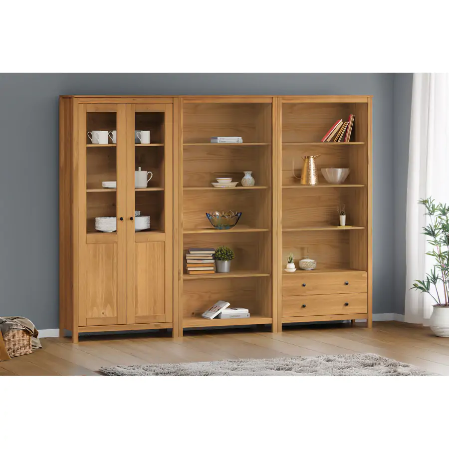 Knihovna TORINO ve voskovém provedení v medovém odstínu je vybavena 4 policemi. Je vyrobena z masivní borovice a působí robustním dojmem. 85 × 37 × 190 cm (š × h × v) materiál masiv borovice voskovaná v medovém odstínu čtyři police dodávané v demontu