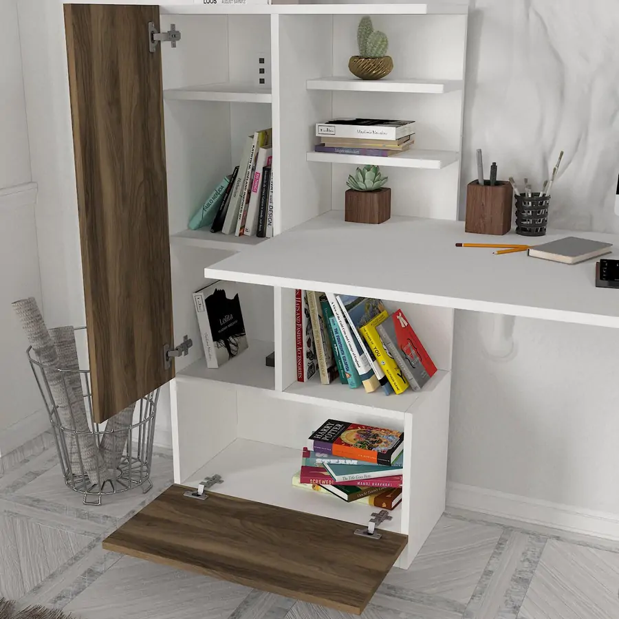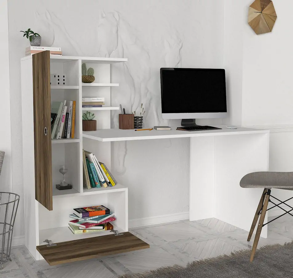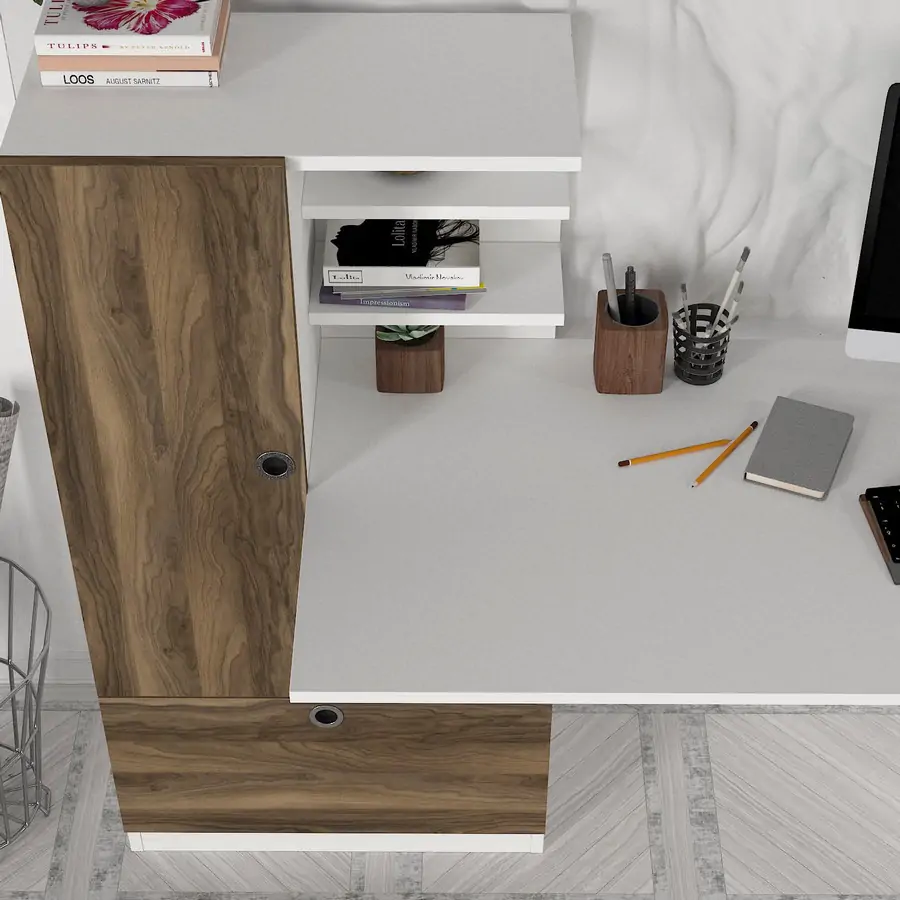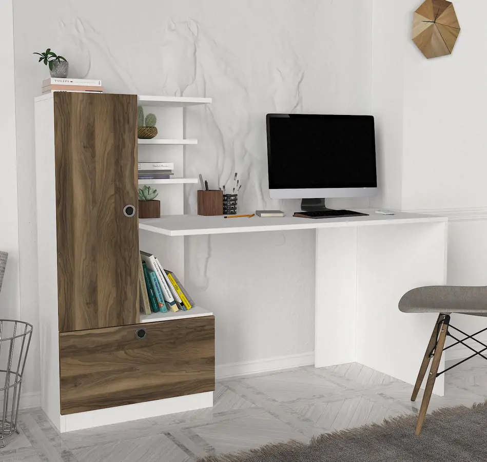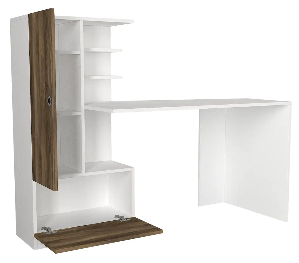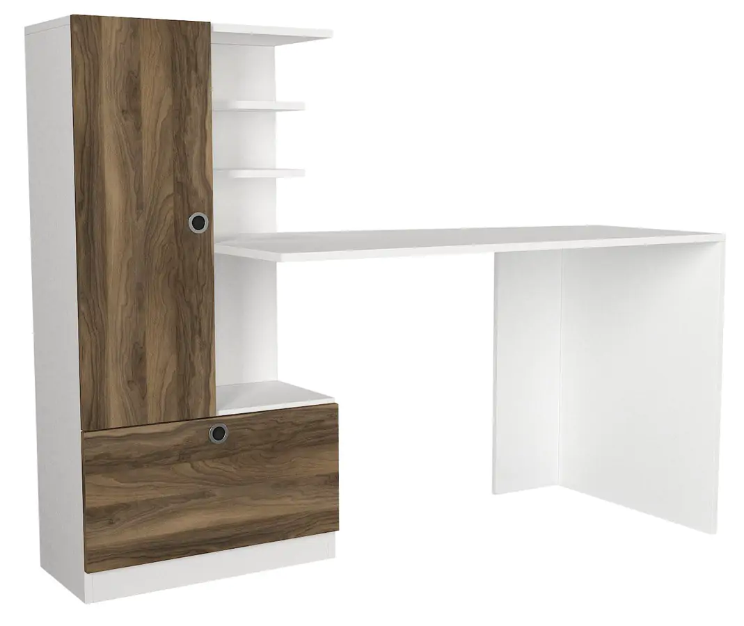 Pracovní stůl DRAFT s policovým regálem je vyroben z kvalitního lamina o tl.18 mm hraněné PVC páskou, odolného proti poškrábání v barvě matná bílá. Regál disponuje úložným prostorem s dvířky a také dvířky s výklopem ve spodní části. Pracovní plocha stolu je 120 x 62 cm. Výška pracovní desky je 73,6 cm. Dodáváme v demontovaném stavu.