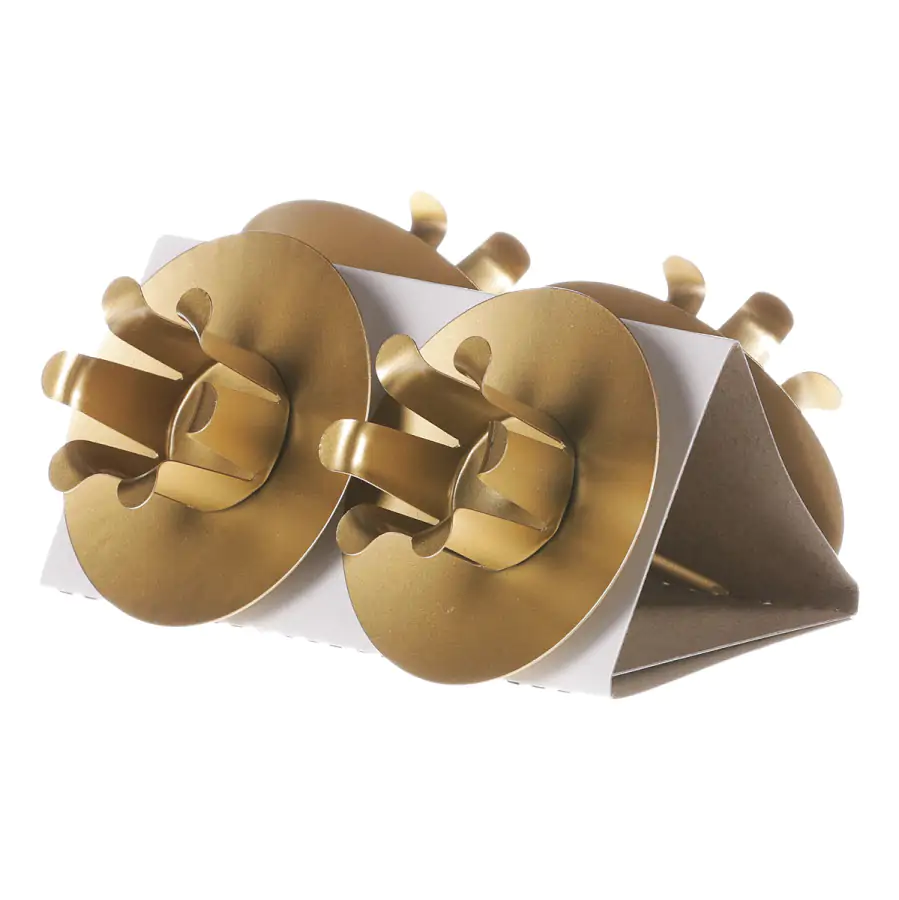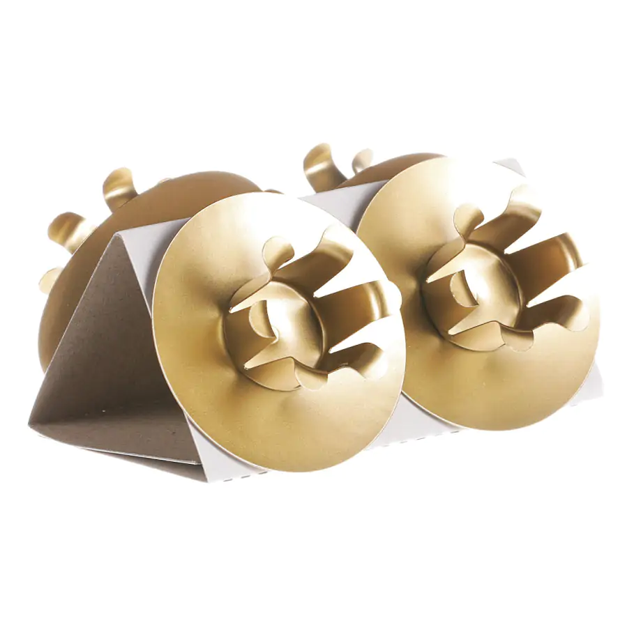 Bodce na kónické svíčky ve zlatém provedení, se stanou neodmyslitelnou součástí (nejen) adventní výzdoby! Bodce zajistí svíčkám stabilitu a zároveň nabízí i dostatek místa pro zachycení ztékajícího vosku. Dodejte svému domovu nezaměnitelnou hřejivou atmosféru a vychutnejte si hru světel se stíny. Parametry: balení 4 ks šířka 5 cm výška 6 cm hloubka 5 cm průměr otvoru pro svíčku 2 cm