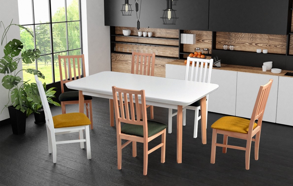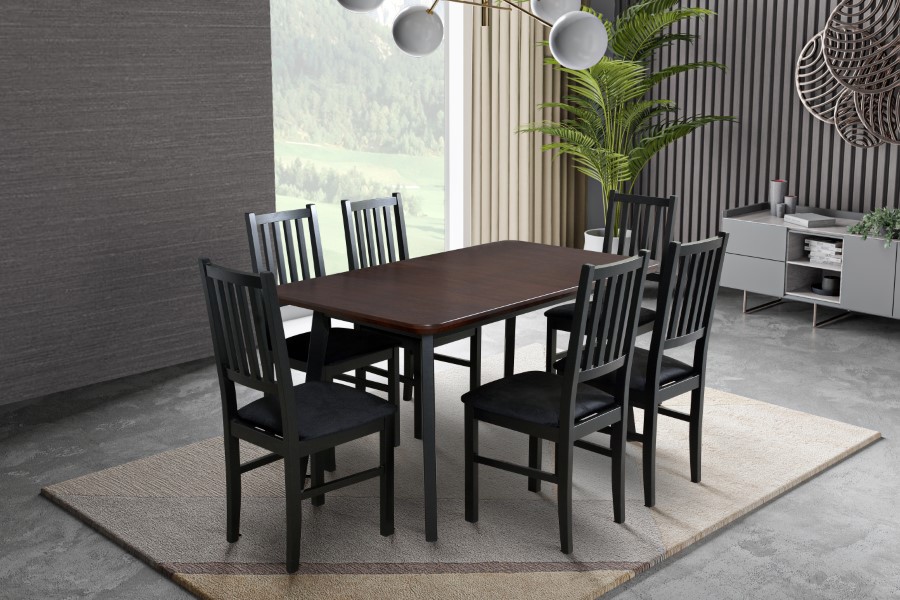 Jídelní set STRAKOŠ OS VII a N VII je vhodný pro 4-8 osob, je sestaven z rozkládacího stolu STRAKOŠ OS VII a 6-ti židlí STRAKOŠ N VII. Je možné si dokoupit libovolné množství židlí. Stůl STRAKOŠ OS VII je stůl rozkládací určený do restaurací, hotelů i domácností. Tento rozkládací stůl je pevný a stabilní. Je v rozměrech, délka ve složeném stavu 140 cm a v rozloženém stavu je 180 cm, šířka stolu 80 cm a výška stolu je 75 cm. Konstrukce stolu je vyrobena z bukového dřeva. Deska stolu je z lakovaného MDF v bílé barvě nebo v dýze v odstínu ořech a dub přírodní. Stůl má obdélníkový tvar. Židle STRAKOŠ N VII je židle do restaurací, hotelů i domácností. Je velice pevná a také přiměřeně lehká cca 5 kg. Tato židle je v rozměrech, výška opěradla 94 cm, výška sedací plochy židle s čalouněným sedákem je 47 cm (s lakovaným ne čalouněným sedákem 44 cm), hloubka je 40 cm, šířka židle je 43 cm. Židle N VII je vyrobena z masívu bukového dřeva. Varianta se sedákem nečalouněným Jídelní židle STRAKOŠ N VII-D. Jídelní set Vám umíme dodat v libovolné barevné kombinaci dle dostupných variant. Zobrazení barev se může lišit dle nastavení Vašeho elektronického zařízení a není důvodem k reklamaci. Set je dodáván v celku, pouze nohy stolu jsou demontovány.